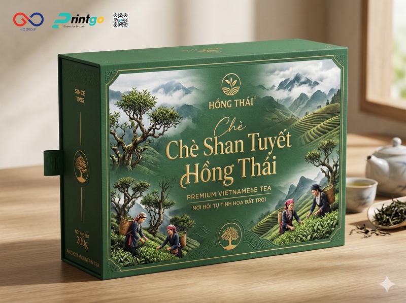 Trà Shan Tuyết Hồng Thái là dòng chè đặc sản thượng hạng của Tuyên Quang, tuy nhiên nhiều doanh nghiệp vẫn gặp khó khăn khi tiếp cận phân khúc cao cấp do chưa đầu tư tương xứng vào bao bì. Thực tế cho thấy, một thiết kế hộp trà chỉn chu sẽ giúp bảo vệ sản phẩm và tạo lợi thế cạnh tranh rõ rệt trên thị trường. Trong bài viết này, Printgo sẽ gợi ý các giải pháp in hộp giấy đựng trà Shan Tuyết chuyên nghiệp, giúp HTX và doanh nghiệp nâng tầm giá trị thương hiệu và thúc đẩy doanh số hiệu quả.