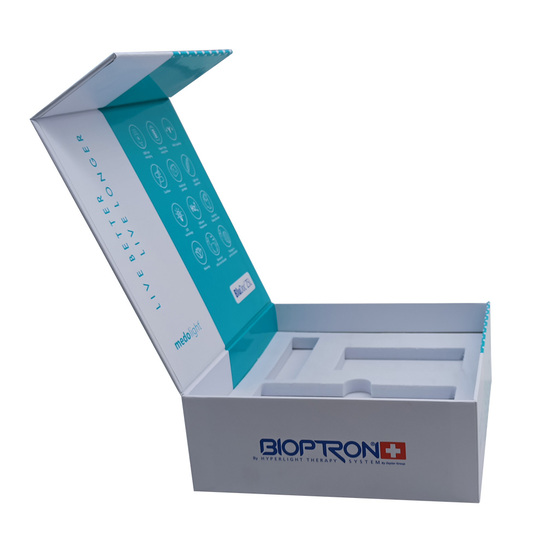 Hộp giấy đựng thuốc nắp nam châm PG-MDC-01 được thiết kế đơn giản với tông màu trắng và xanh là những tông màu đặc trưng của ngành y-dược. Màu trắng tượng trưng cho sự sạch sẽ, thanh khiết - bản chất của lĩnh vực y tế. Màu xanh tạo cảm giác an toàn và đáng tin cậy - đặc trưng của các sản phẩm y dược. Trên vỏ hộp đựng thuốc được cung cấp đầy đủ thông tin về tên sản phẩm, thương hiệu, cách sử dụng và mã số mã vạch, tạo sự tin tưởng với khách hàng về chất lượng sản phẩm. Về quy cách hộp được thiết kế và in ấn theo quy cách hộp nắp nam châm tiện lợi, chắc chắn. Đặc biệt bên trong hộp đựng sản phẩm đều được trang bị khay định hình, giúp bảo vệ sản phẩm tránh hư hỏng trong quá trình vận chuyển.