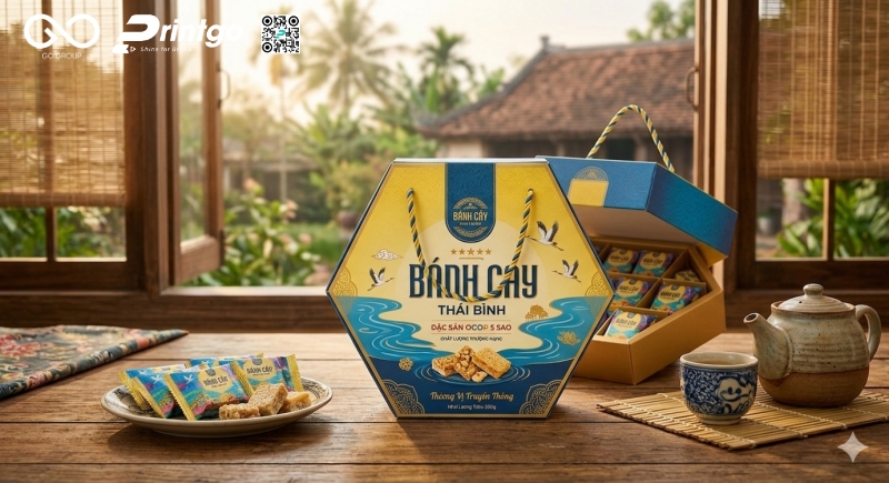 Bánh cáy Thái Bình là một trong những đặc sản nổi bật của vùng đồng bằng Bắc Bộ, không chỉ ghi dấu bởi hương vị truyền thống mà còn mang giá trị văn hóa lâu đời. Trong bối cảnh thị trường ngày càng cạnh tranh, bao bì trở thành yếu tố quan trọng giúp sản phẩm tạo ấn tượng ngay từ lần đầu tiếp cận. Thấu hiểu điều đó, Printgo mang đến mẫu hộp giấy mềm đựng đặc sản bánh cáy Thái Bình, vừa đảm bảo khả năng bảo quản, vừa góp phần nâng tầm hình ảnh thương hiệu, giúp sản phẩm nổi bật hơn trong mắt người tiêu dùng.