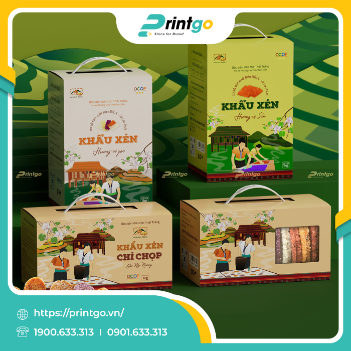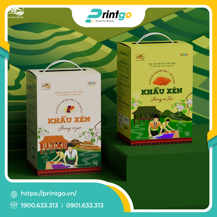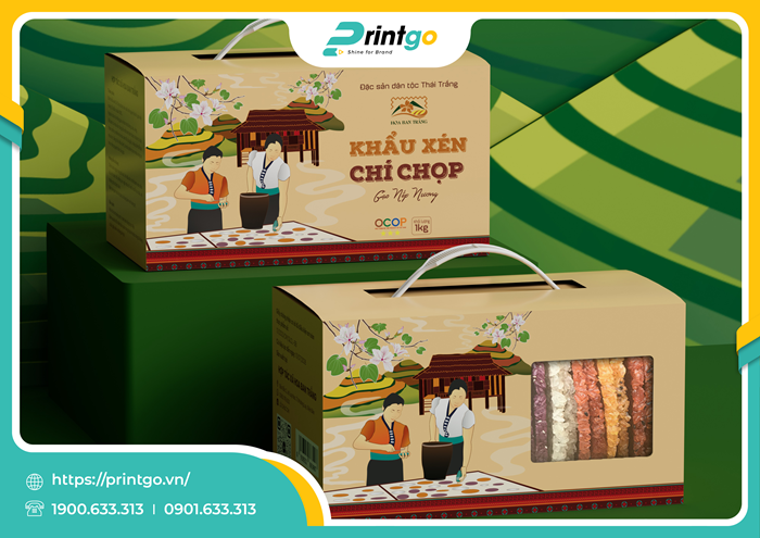 Ngày nay, thị trường nông sản không chỉ đòi hỏi chất lượng sản phẩm vượt trội mà còn đặt ra yêu cầu cao về bao bì. Một thiết kế hộp ấn tượng không chỉ giúp bảo vệ sản phẩm bên trong mà còn góp phần kể câu chuyện thương hiệu, thu hút sự chú ý của khách hàng. Thấu hiểu điều đó, Printgo giới thiệu mẫu hộp mềm đựng bánh khẩu xén OCOP 4 sao PG-HG25-02 — giải pháp bao bì vừa tinh tế vừa hiện đại, giúp sản phẩm nổi bật trên kệ hàng và trong lòng người tiêu dùng.
