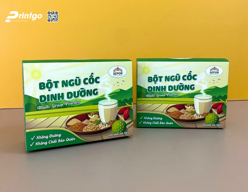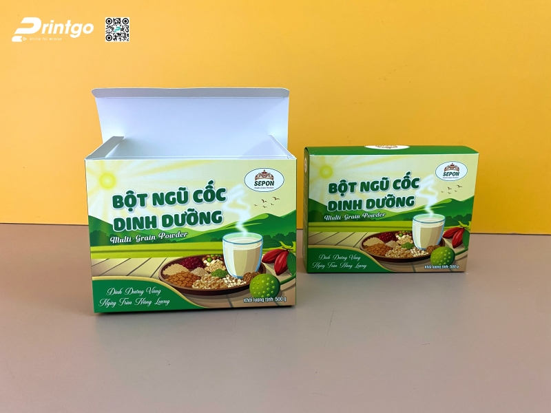 Từ thực tế triển khai mẫu hộp bột ngũ cốc Sepon, có thể thấy bao bì nông sản ngày nay không chỉ dừng lại ở vai trò bảo vệ sản phẩm, mà còn là công cụ truyền tải giá trị thương hiệu và tạo dựng niềm tin với người tiêu dùng. Với kinh nghiệm trong lĩnh vực thiết kế và in bao bì nông sản, Printgo mang đến giải pháp trọn gói từ tư vấn ý tưởng, xây dựng hình ảnh đến sản xuất bao bì phù hợp từng dòng sản phẩm. Qua đó, doanh nghiệp có thể sở hữu những mẫu bao bì chỉn chu, đồng bộ và đáp ứng tốt cả yêu cầu thẩm mỹ lẫn công năng sử dụng trên thị trường.