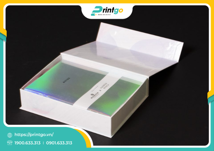 Bên cạnh đó, thiết kế này cũng phép linh hoạt ứng dụng nhiều kỹ thuật gia công hiện đại nhằm gia tăng hiệu ứng thị giác và khẳng định đẳng cấp thương hiệu. Tùy theo định hướng thiết kế, khách hàng có thể lựa chọn các phương pháp như ép kim, phủ UV, cán mờ, cán bóng,... để nâng cao giá trị thẩm mỹ cho bao bì sản phẩm.
