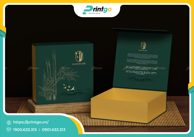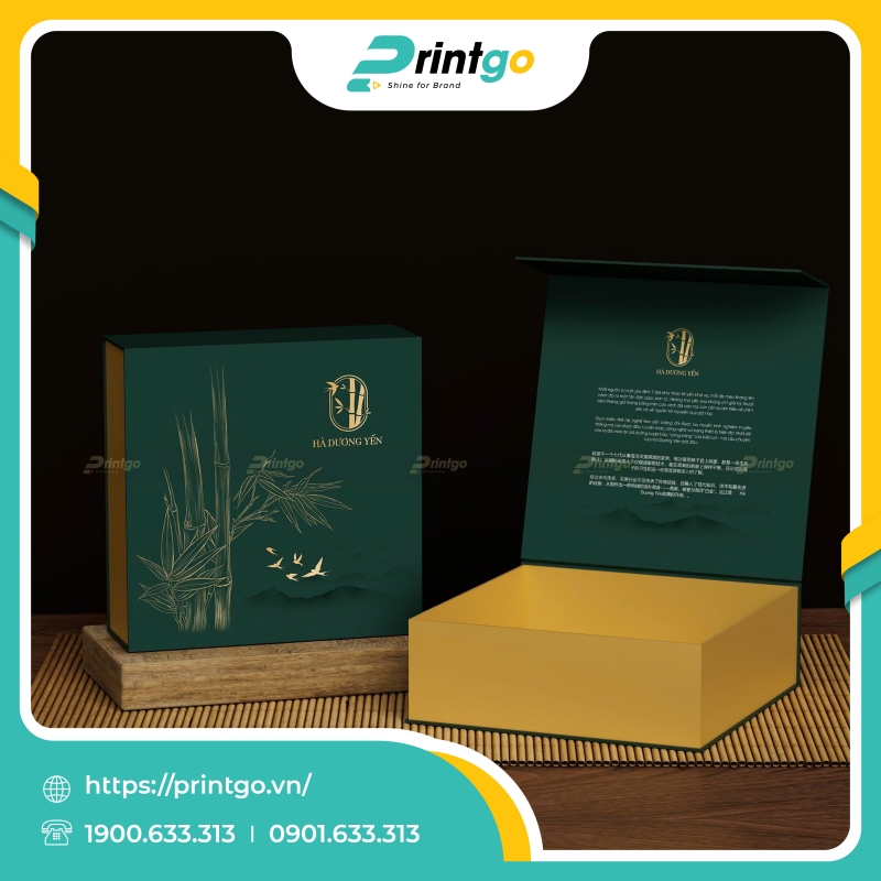 Trong thị trường hiện đại ngày nay, hộp đựng yến không chỉ là phương tiện để bảo vệ và bảo quản sản phẩm mà còn là một phần quan trọng trong việc xây dựng thương hiệu và thu hút khách hàng. Với sứ mệnh mang đến cho khách hàng những sản phẩm bao bì độc đáo và tinh tế, Printgo tự hào giới thiệu mẫu hộp đựng yến Hà Dương Yến – một tác phẩm kết hợp hoàn hảo giữa thiết kế nghệ thuật và chất lượng vượt trội.