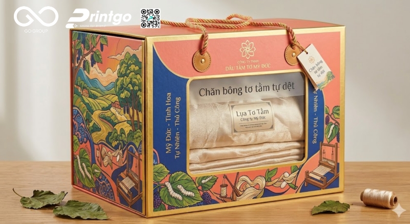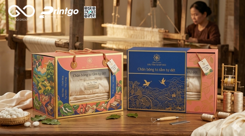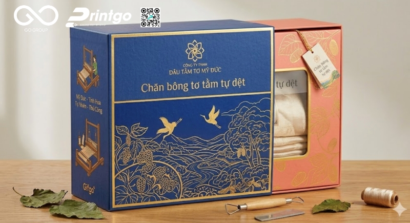 Giữa rất nhiều sản phẩm OCOP trên thị trường, điều khiến một sản phẩm được lựa chọn không chỉ nằm ở chất lượng bên trong mà còn ở cách nó được thể hiện ra bên ngoài. Với chăn bông tơ tằm tự dệt Mỹ Đức, giá trị không chỉ đến từ chất liệu mà còn đến từ câu chuyện làng nghề và sự tinh xảo trong từng công đoạn. Từ góc nhìn thực tiễn trong ngành bao bì, Printgo tiếp cận bài toán này bằng một giải pháp bao bì quà tặng cao cấp, nơi thiết kế không chỉ để chứa đựng mà còn để tôn vinh, giúp sản phẩm trở nên nổi bật, dễ nhận diện và phù hợp hơn với các mục đích biếu tặng, trưng bày hay phân phối ở phân khúc cao.