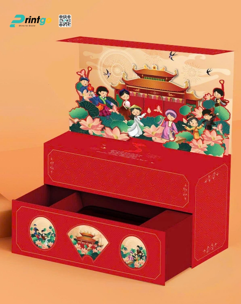 Việc đầu tư chỉn chu cho bao bì quà Tết ngày càng được doanh nghiệp ưu tiên nhằm truyền tải sự trân trọng và gia tăng ấn tượng trong mắt người nhận. Những mẫu hộp được thiết kế nhiều tầng, có hiệu ứng mở độc đáo đang trở thành lựa chọn nổi bật nhờ khả năng nâng tầm giá trị bộ quà. Trong đó, hộp quà Tết 2 tầng có popup 3D cao cấp là dòng sản phẩm mang đến trải nghiệm khác biệt, kết hợp hài hòa giữa tính thẩm mỹ và công năng sử dụng.