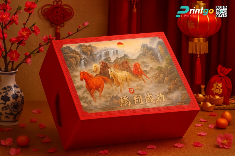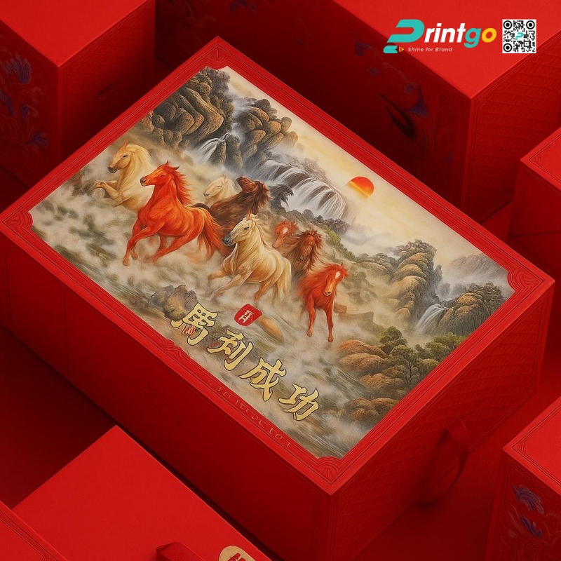 Khi không khí Tết Bính Ngọ 2026 dần lan tỏa, Printgo tự hào mang đến mẫu hộp quà Tết Mã Đáo Thành Công – biểu tượng cho khát vọng vươn xa và tinh thần khởi đầu hứng khởi. Với chất liệu cao cấp, hình ảnh độc đáo, thiết kế này toát lên vẻ sang trọng, may mắn và tràn đầy năng lượng. Đây chính là lựa chọn hoàn hảo để doanh nghiệp gửi gắm lời chúc thịnh vượng, đồng thời khẳng định phong thái chuyên nghiệp và đẳng cấp trong mùa Tết sắp tới.