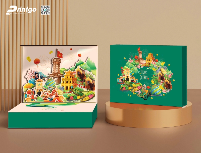 Khi mùa Tết đang đến gần, Printgo mang đến dịch vụ thiết kế và in hộp quà Tết chuyên nghiệp, cùng hệ thống xưởng in hiện đại trải dài từ Bắc vào Nam, sẵn sàng đáp ứng linh hoạt mọi yêu cầu về số lượng, thời gian và chất lượng. Từ khâu lên ý tưởng sáng tạo đến sản xuất thành phẩm, Printgo luôn đồng hành cùng doanh nghiệp trong hành trình kiến tạo những mẫu hộp quà Tết sang trọng, tinh tế và gửi trọn tinh thần tri ân trong từng chi tiết.