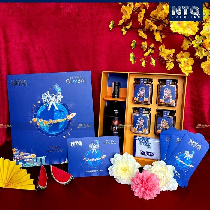 Tết luôn là dịp đặc biệt quan trọng với người Việt. Là thời gian để người thân, bạn bè trao nhau những yêu thương, những lời chúc tốt đẹp nhất cho một năm mới trước mắt. Với doanh nghiệp, đây cũng là sự kiện để tri ân cán bộ, nhân viên, đối tác, khách hàng. Hòa trong không khí ấy, Printgo đã đồng hành cùng NTQ Solution cho ra mắt bộ quà Tết gồm rất nhiều chi tiết, trong đó hộp quà tết NTQ Solution PG-HQT23-88 được thiết kế tinh tế, sang trọng mang đến sự thu hút lớn.