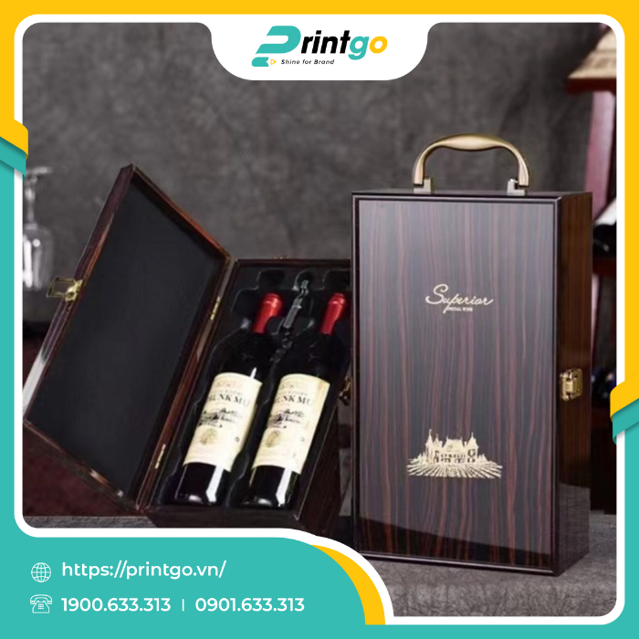 Bên cạnh đó, kết cấu hộp vô cùng chắc chắn, được gia cố kỹ lưỡng ở các góc cạnh nhằm bảo vệ tối đa sản phẩm bên trong khỏi những va chạm và tác động bên ngoài. Thiết kế hộp hình chữ nhật cân đối, các góc cạnh sắc nét, đường nét tinh xảo, tạo nên sự hài hòa, cân xứng. Điều này không chỉ tôn lên vẻ đẹp sang trọng mà còn thể hiện sự chỉn chu, chuyên nghiệp trong từng chi tiết nhỏ nhất, rất thích hợp để đóng gói và trưng bày những chai rượu cao cấp, thể hiện đẳng cấp và gu thẩm mỹ tinh tế của người sử dụng.