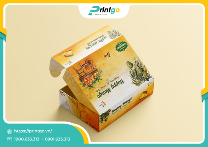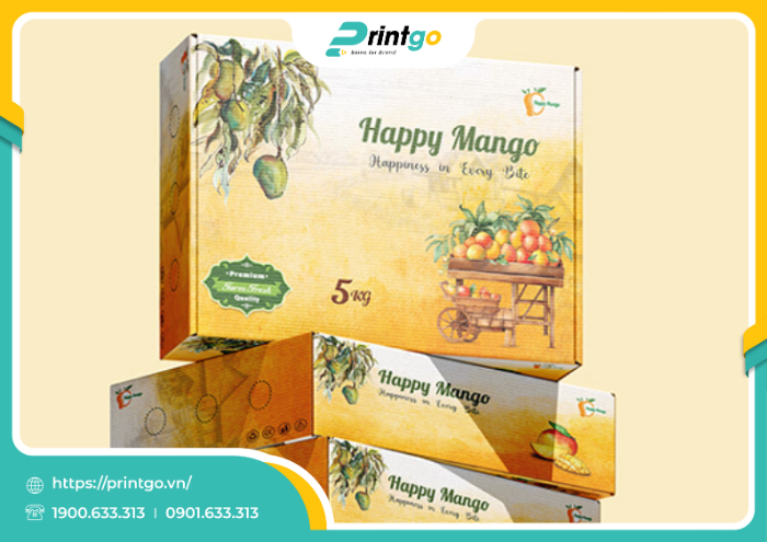 Trong bối cảnh thị trường nông sản ngày càng cạnh tranh, xoài không chỉ là một loại quả nhiệt đới được ưa chuộng mà còn đem lại giá trị kinh tế cao nhờ hương vị tuyệt hảo và giá trị dinh dưỡng vượt trội. Do đó, việc đầu tư vào bao bì chuyên nghiệp, tỉ mỉ là yếu tố then chốt giúp nâng tầm thương hiệu, tăng sức hút với người tiêu dùng trong quá trình kinh doanh. Trong bài viết này, hãy cùng Printgo khám phá mẫu hộp sóng nắp gài đựng nông sản cao cấp PG-HG25-97, là sự kết hợp hoàn hảo giữa tính thẩm mỹ, độ bền và công năng sử dụng.