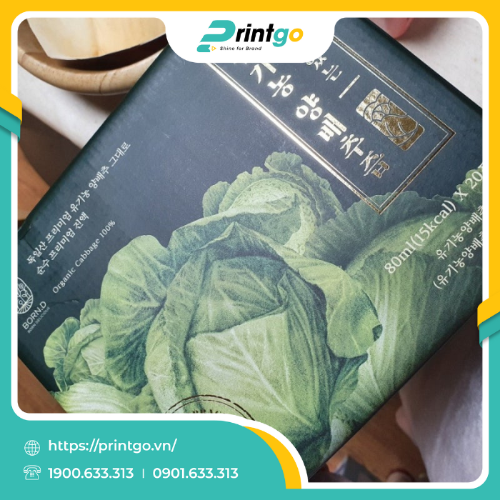Ngoài ra, hộp còn được ứng dụng công nghệ ép kim hiện đại, tạo hiệu ứng ánh kim sang trọng, giúp thông tin và chứng nhận hữu cơ trở nên thu hút. Từ đó, tạo ra sự khác biệt so với các sản phẩm cùng phân khúc, nâng cao tính thẩm mỹ của bao bì và góp phần xây dựng hình ảnh thương hiệu cao cấp, đáng tin cậy trong mắt khách hàng.