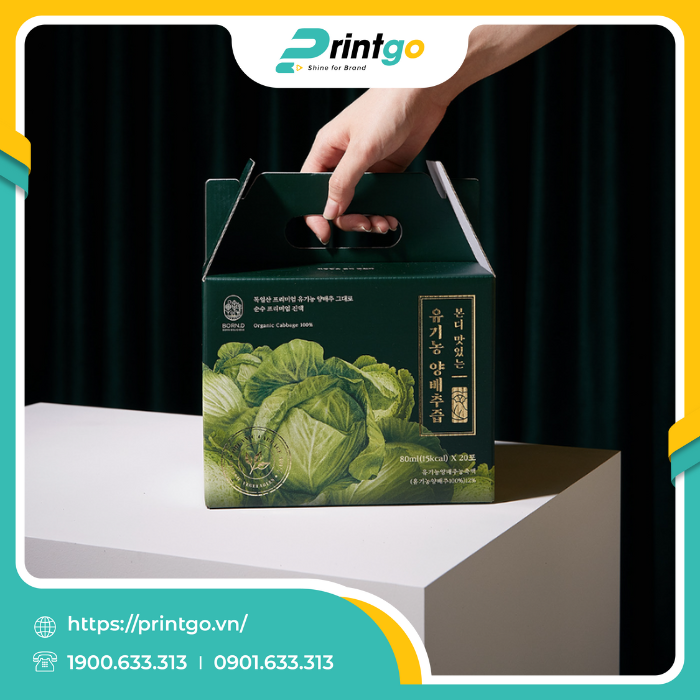 Thị trường OCOP đang trên đà phát triển mạnh mẽ, mở ra nhiều cơ hội kinh doanh đầy tiềm năng cho các doanh nghiệp và hợp tác xã nông sản. Tuy nhiên, để tạo nên sự khác biệt và thu hút người tiêu dùng, yếu tố bao bì đóng vai trò vô cùng quan trọng. Một bao bì đẹp mắt, tiện dụng không chỉ giúp nâng cao giá trị thương hiệu mà còn tạo ra trải nghiệm tích cực cho khách hàng. Vì vậy, Printgo xin giới thiệu mẫu hộp sóng quai xách đựng nông sản tiện lợi PG-HG25-102, một giải pháp đóng gói hoàn hảo, hứa hẹn mang đến sự hài lòng tuyệt đối cho người tiêu dùng.