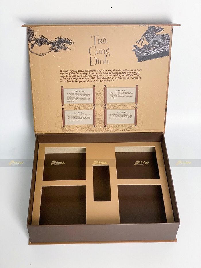 Để khẳng định vị thế của thương hiệu, các nhãn hàng không chỉ cần tập trung đảm bảo chất lượng sản phẩm mà còn cần đặc biệt chú trọng tới bộ bao bì bên ngoài. Chất liệu đặc biệt cùng kỹ thuật in offset và gia công ép kim vàng kim sang trọng khiến hộp trà Vỹ Dạ Xưa PG-HT22-12 không chỉ đẹp về ngoại hình mà còn thể hiện sự chuẩn chỉnh của một thương hiệu lớn.