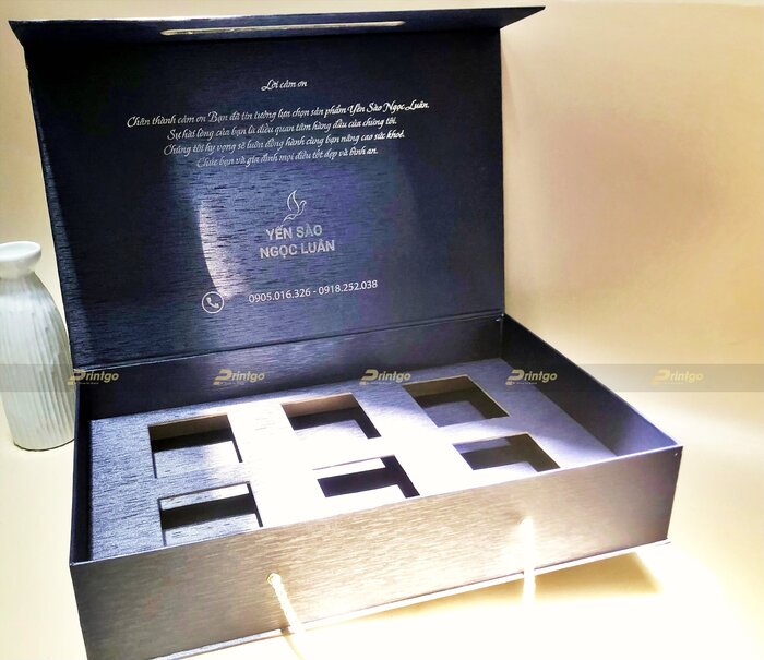 Tại Printgo, công nghệ in ấn hiện đại được áp dụng, đồng bộ quy trình in ấn và thiết kế, đảm bảo cho ra sản phẩm chuẩn với bản thiết kế. Chúng tôi có kho mẫu hộp yến đồ sộ, đa dạng, nhiều chủ đề phù hợp các nhu cầu khác nhau của khách hàng. Dù bạn ở đâu trên lãnh thổ Việt Nam, Printgo đều phục vụ chu đáo bởi chúng tôi liên kết với hệ thống các xưởng in trên toàn quốc, và bạn chỉ cần một cú click chuột trên Website của Printgo để nhận tư vấn cũng như đăng ký đơn hàng. Đội ngũ chăm sóc khách hàng tận tâm sẽ giúp quý khách có những lựa chọn phù hợp nhất cho thương hiệu. Bên cạnh đó, là chính sách giá tốt, thanh toán và nhận hàng tận nơi.