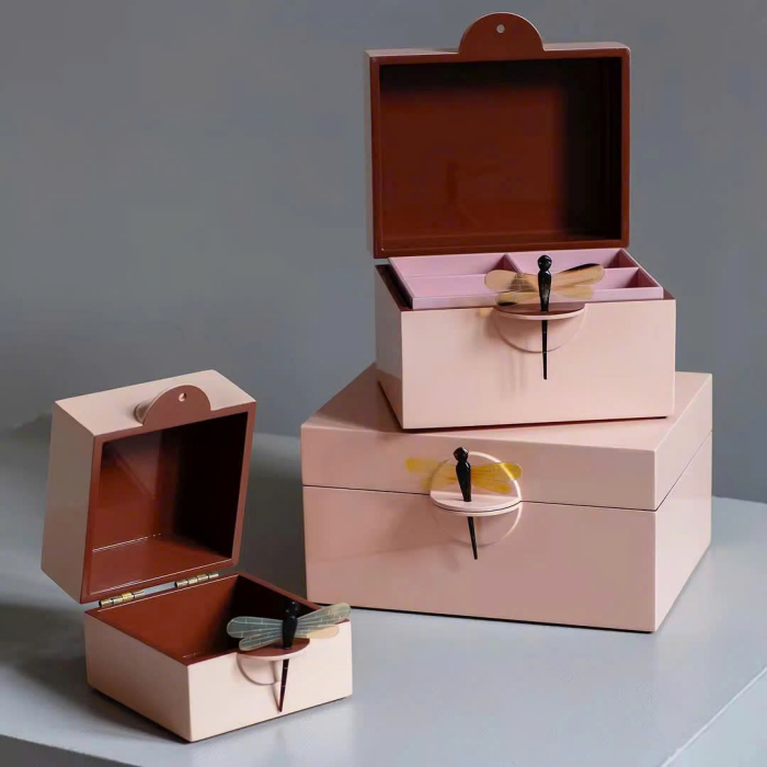 Hộp trang sức sơn mài là một trong những sản phẩm cao cấp được yêu thích nhất. Những chiếc hộp này thường có thiết kế nhỏ gọn và tinh tế, được trang trí với các họa tiết phức tạp, giúp làm nổi bật vẻ đẹp của các món trang sức bên trong. Hộp trang sức sơn mài bảo vệ các món đồ quý giá và tạo điểm nhấn sang trọng cho không gian sống.