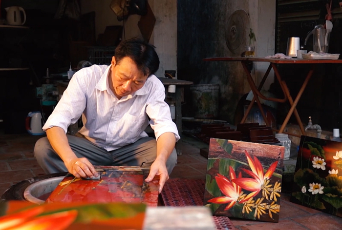 Sơn mài là một công đoạn thủ công cực kỳ công phu và đòi hỏi sự tỉ mỉ trong từng chi tiết. Sau khi hoàn thành giai đoạn chế tác gỗ, các nghệ nhân sẽ bắt đầu phủ lớp sơn mài, chờ khô, sau đó mài nhẵn và sơn tiếp các lớp sơn khác nhau cho đến khi đạt được độ bóng hoàn hảo. Một chiếc hộp gỗ sơn mài có thể phải trải qua hàng chục lần sơn và mài, trong khi các họa tiết trang trí được vẽ tay tinh xảo, thường là các hình ảnh mang đậm tính văn hóa truyền thống như hoa sen, phượng hoàng, hay các cảnh vật thiên nhiên.