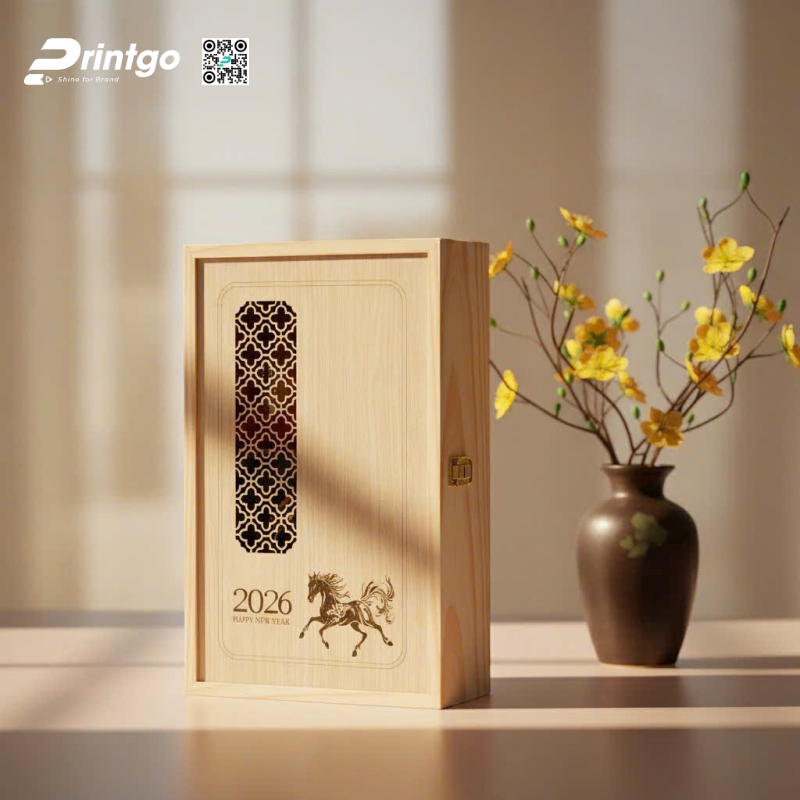 Thời điểm cuối năm luôn là lúc các doanh nghiệp và cá nhân tìm kiếm những mẫu bao bì Tết thật sự ấn tượng để gửi gắm lời tri ân và tạo dấu ấn khác biệt. Nếu bạn đang cần một lựa chọn sang trọng và bền vững hơn cho bộ quà tặng của mình, mẫu hộp gỗ nắp lật đựng quà Tết từ Printgo chắc chắn là gợi ý đáng cân nhắc. Với thiết kế tinh giản và hiện đại, mẫu hộp không chỉ thể hiện sự trân trọng đối với người nhận mà còn góp phần nâng tầm hình ảnh thương hiệu trong mùa biếu tặng Bính Ngọ 2026.