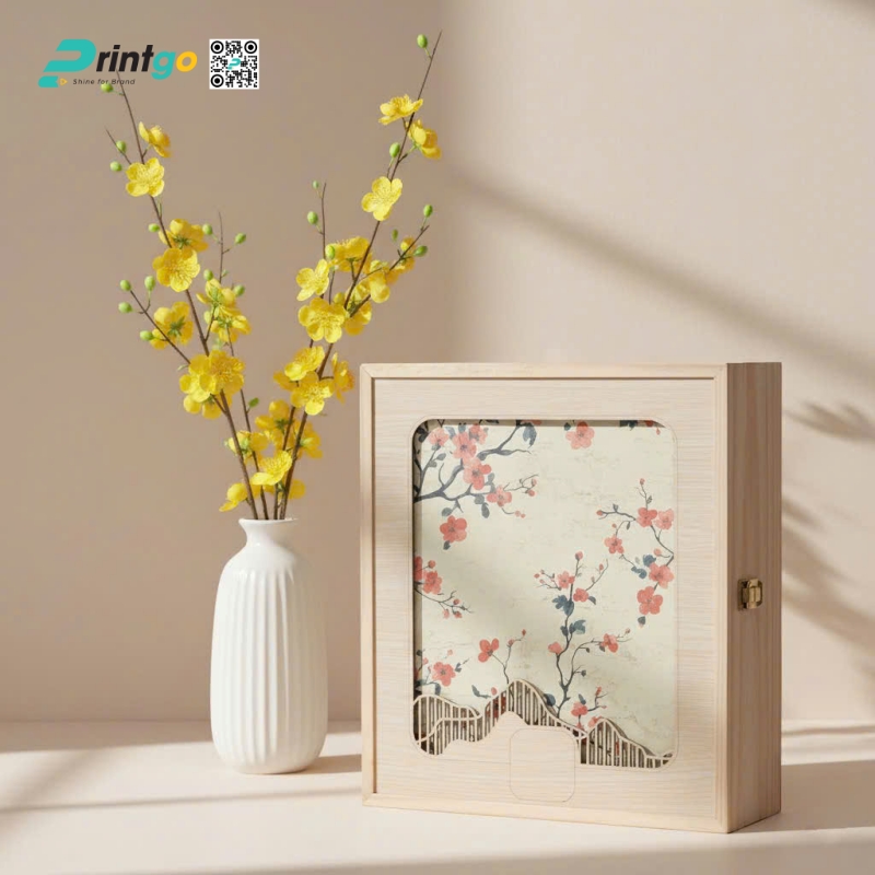 Trong xu hướng quà tặng Tết ngày càng đề cao sự bền vững và tính thẩm mỹ, hộp quà gỗ đang trở thành lựa chọn được nhiều doanh nghiệp ưu tiên. Nổi bật trong số đó là hộp quà Tết gỗ nắp lật có khóa cài chắc chắn của Printgo, mang vẻ đẹp sang trọng và đầy khác biệt. Nhờ khả năng bảo vệ sản phẩm tối ưu kết hợp diện mạo trang nhã, mẫu hộp này giúp doanh nghiệp nâng tầm giá trị món quà và tạo ấn tượng chuyên nghiệp trong mọi dịp trao tặng.