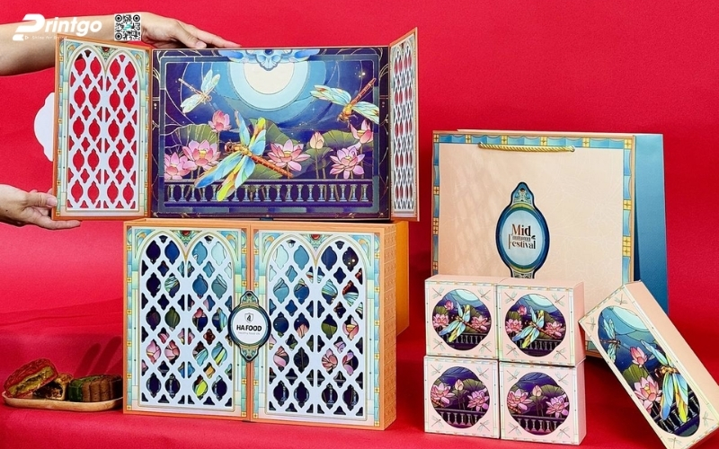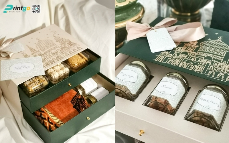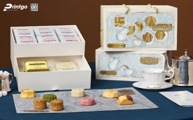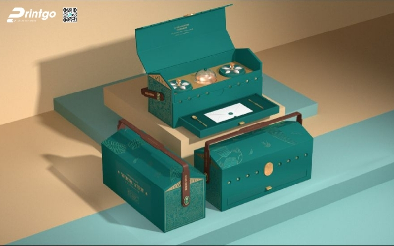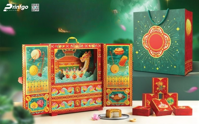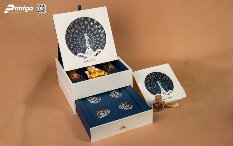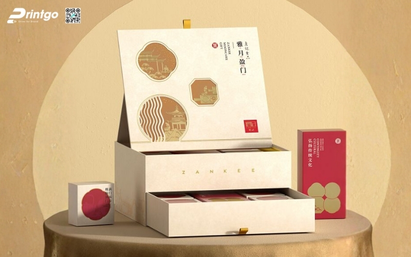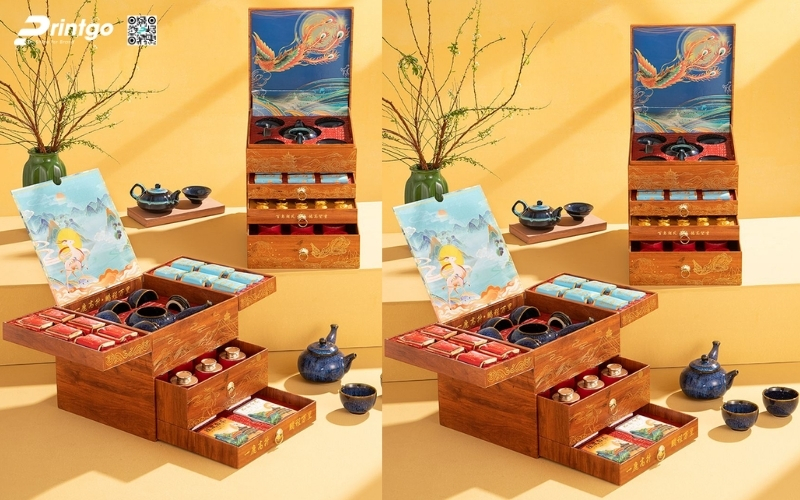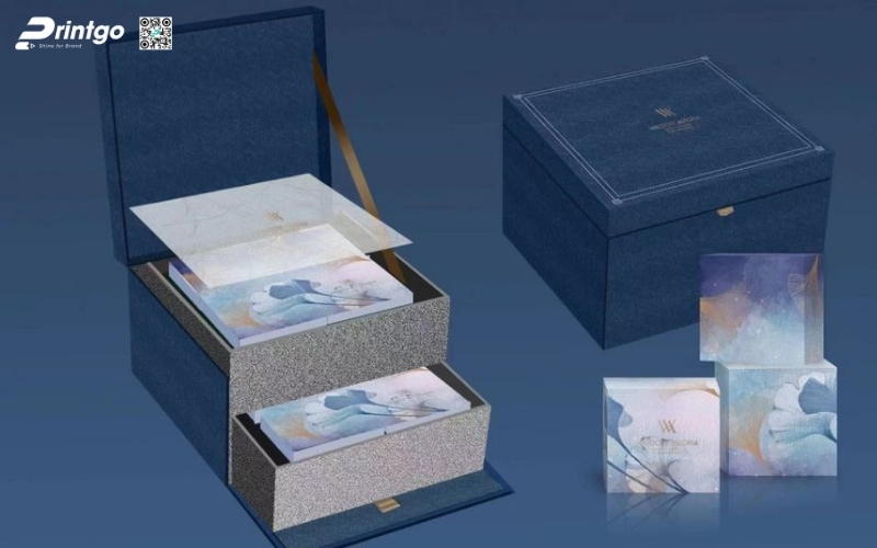 Đa dạng chất liệu gia công tinh xảo: Printgo sử dụng các loại giấy cao cấp như giấy Ivory, Couche, Kraft, giấy mỹ thuật nhập khẩu, kết hợp công nghệ ép nhũ, dập nổi, phủ UV, cán mờ hoặc bóng... giúp hộp quà vừa chắc chắn, vừa sang trọng.