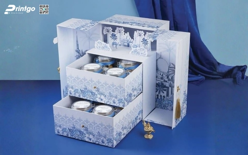 Ngành mỹ phẩm & chăm sóc cá nhân: Những sản phẩm như kem dưỡng, tinh dầu, nước hoa, mặt nạ, set chăm sóc da… cũng có thể được thiết kế trong hộp quà hai tầng nhằm nâng cao trải nghiệm và tăng giá trị thương hiệu.