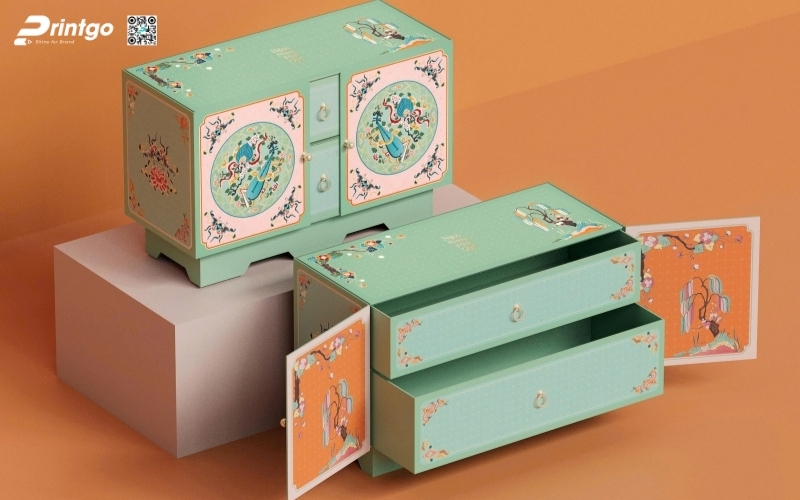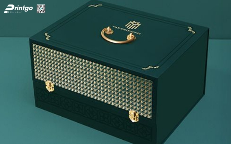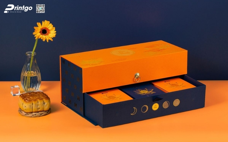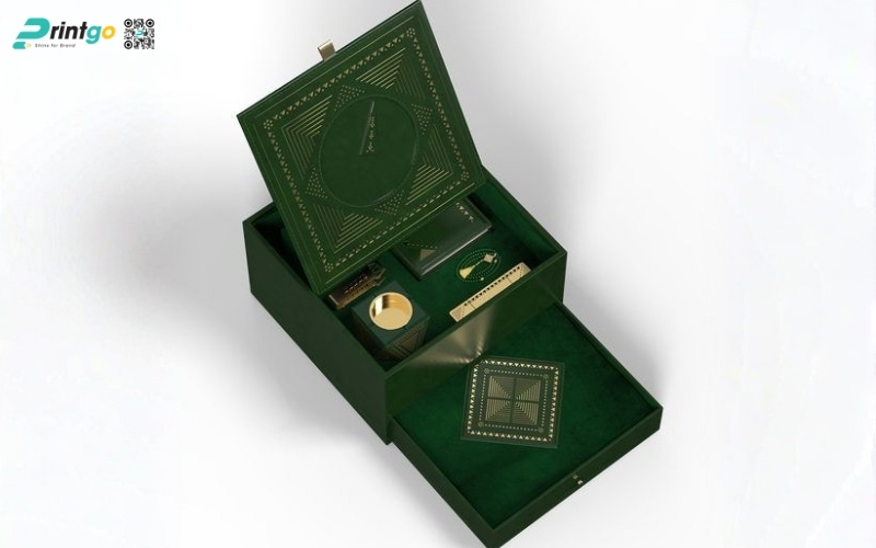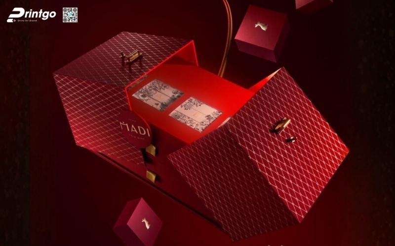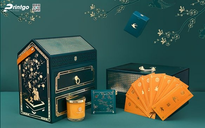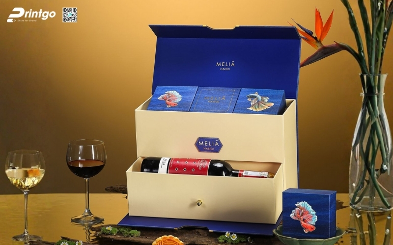 Lựa chọn kỹ thuật in và gia công tinh tế: Các kỹ thuật như ép kim, phủ UV, cán nhung, dập nổi sẽ giúp hộp quà thêm cao cấp, đồng thời tôn vinh họa tiết chủ đạo trên bề mặt.