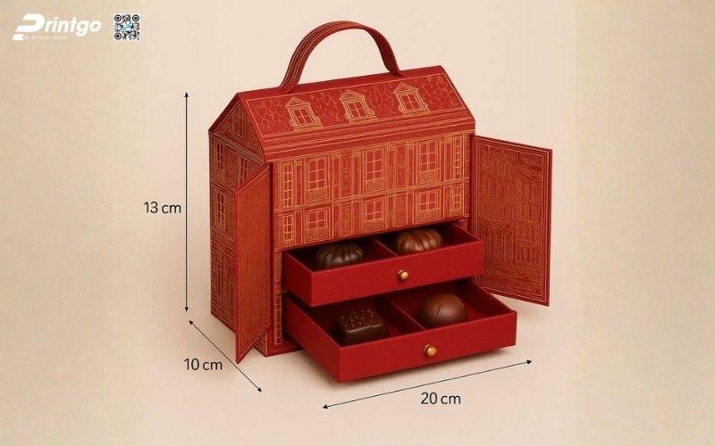 Kích thước tùy chỉnh theo yêu cầu: Với các thương hiệu hoặc doanh nghiệp muốn tạo dấu ấn riêng, hộp quà Tết 2 tầng có thể được thiết kế theo kích thước riêng. Điều này giúp tối ưu trải nghiệm mở quà, đồng thời thể hiện sự khác biệt và tinh tế của thương hiệu.