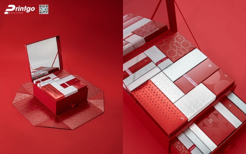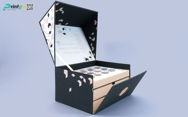 Thiết kế sáng tạo mang đậm bản sắc thương hiệu: Đội ngũ thiết kế tại Printgo luôn chú trọng nghiên cứu phong cách và câu chuyện thương hiệu của từng doanh nghiệp, từ đó sáng tạo nên mẫu hộp quà 2 tầng độc quyền, ấn tượng và giàu tính thẩm mỹ.
