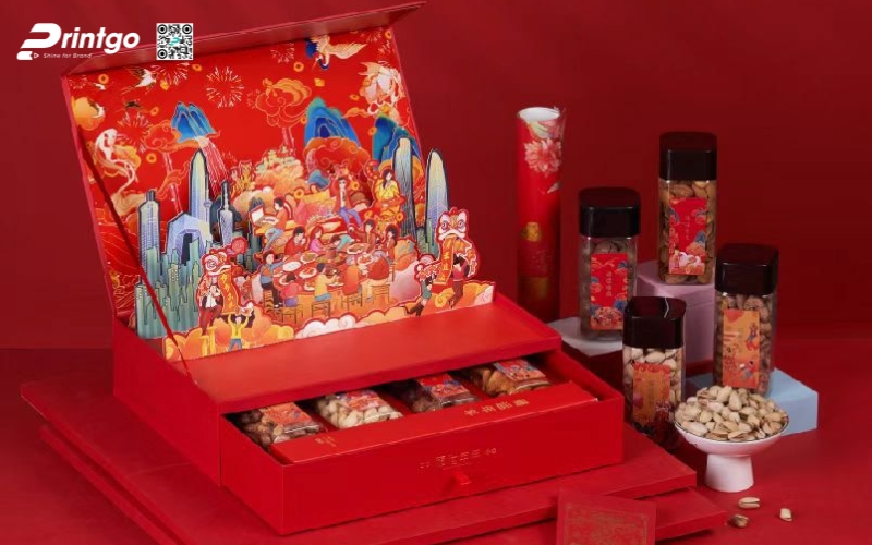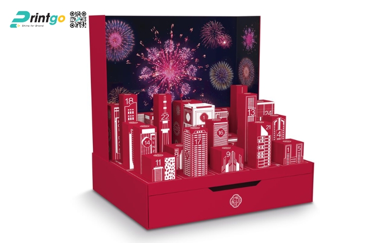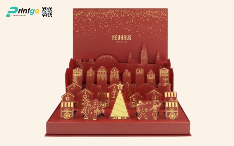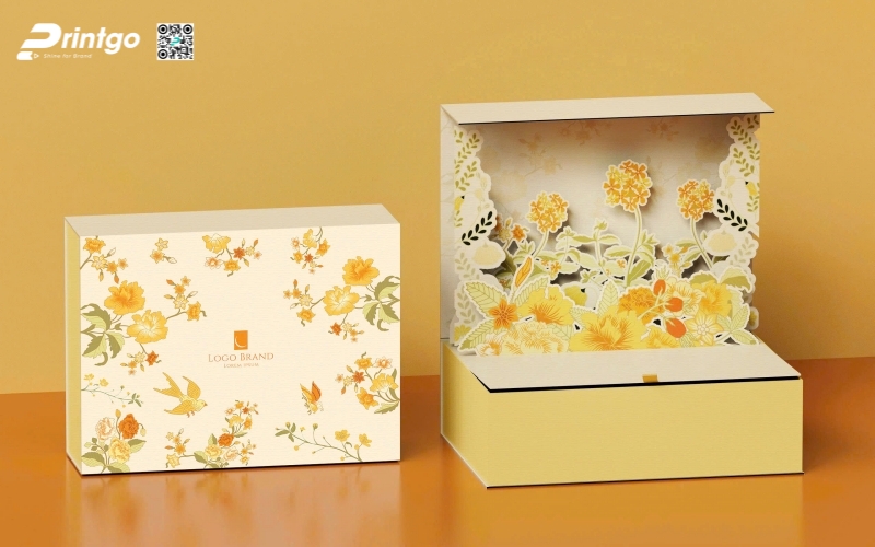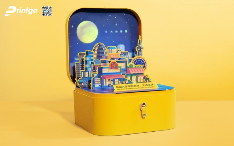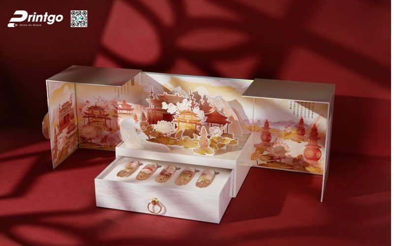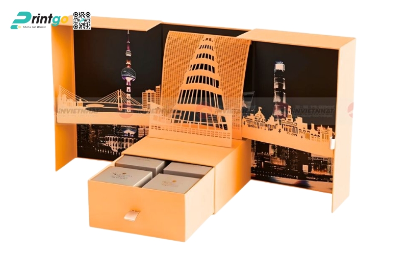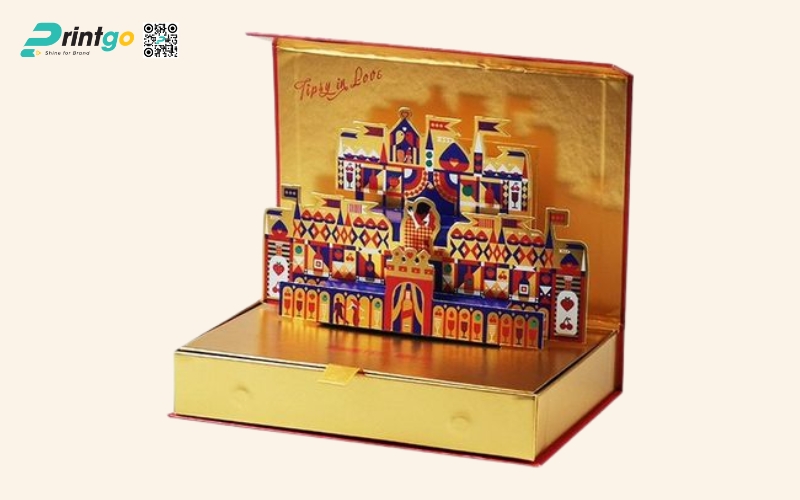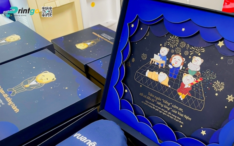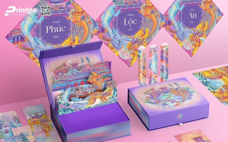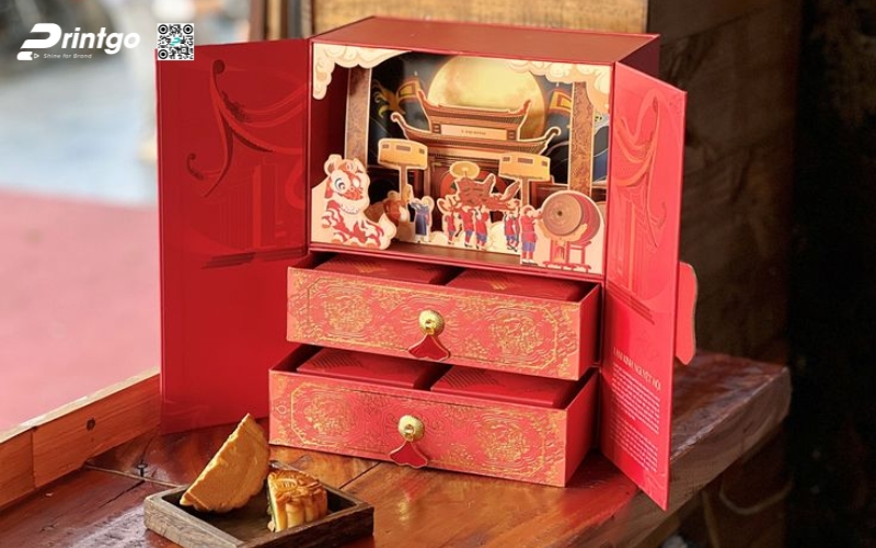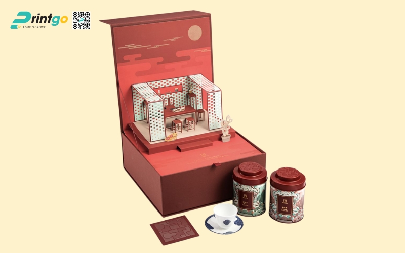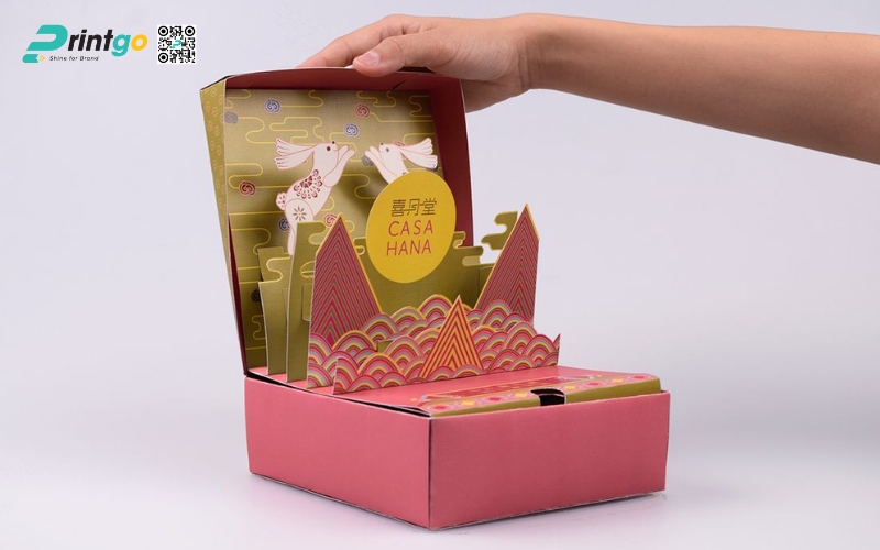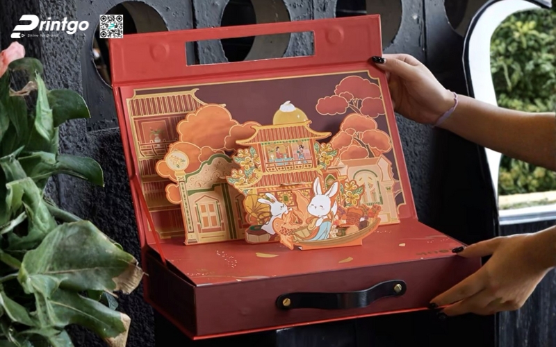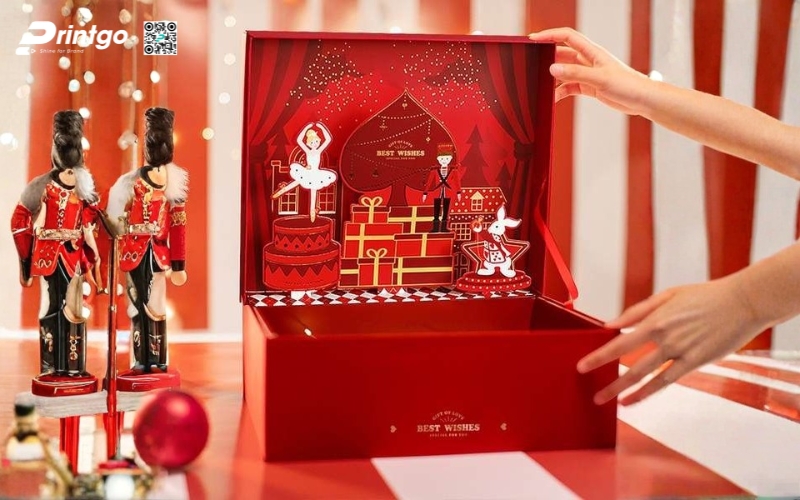 Dễ dàng tùy chỉnh theo yêu cầu: Printgo cung cấp dịch vụ thiết kế hộp quà Tết 3D/Popup theo yêu cầu, giúp doanh nghiệp dễ dàng tạo dấu ấn riêng biệt cho từng chiến dịch tri ân Tết.