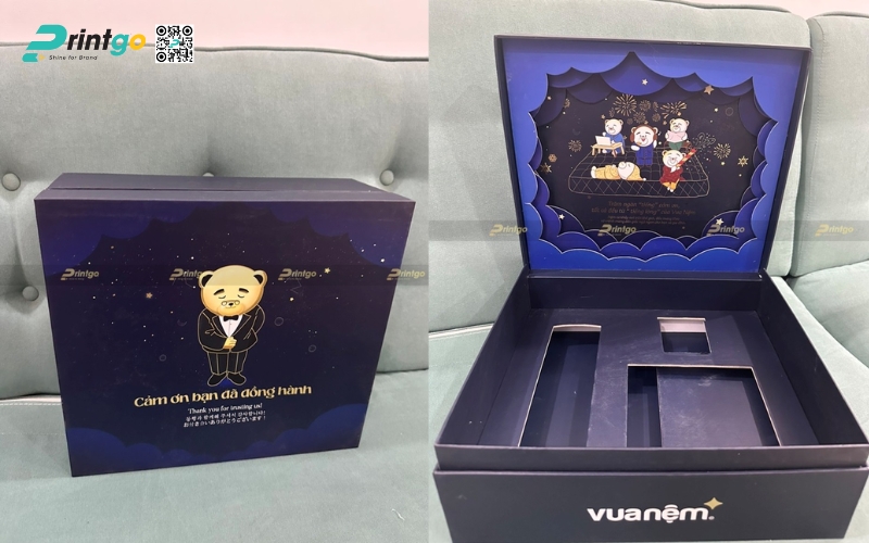 Phù hợp xu hướng thẩm mỹ hiện đại: Sự kết hợp giữa nghệ thuật thiết kế và công nghệ in ấn giúp tạo trải nghiệm mở quà đầy cảm xúc, rất được giới trẻ và doanh nghiệp ưa chuộng.