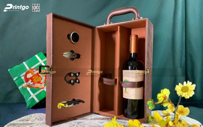 Rượu vang hoặc rượu ngoại: Một chai rượu vang sang trọng giúp nâng tầm giá trị hộp quà, thích hợp để tặng đối tác, khách hàng VIP hay những người yêu thích phong cách thưởng thức tinh tế.