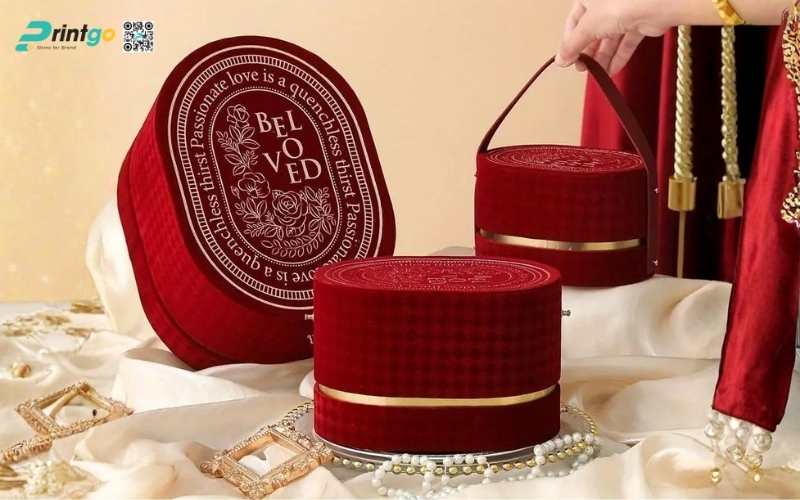 Hình tròn: Mang vẻ tinh tế và sang trọng, thường dùng cho chai rượu, đặc sản hay hộp quà cao cấp. Đường viền mềm mại tạo cảm giác thanh lịch, khác biệt so với hộp hình vuông.