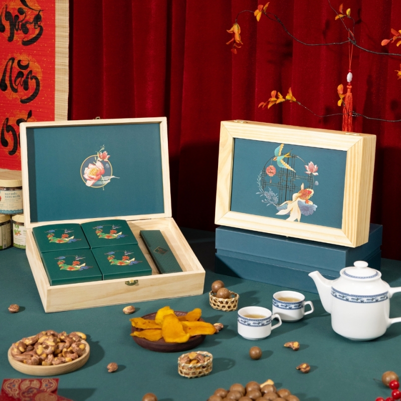Kho mẫu hộp Tết đa dạng: Hàng trăm mẫu hộp gỗ sang trọng, hiện đại, phù hợp cho mọi quy mô dự án và định vị thương hiệu.