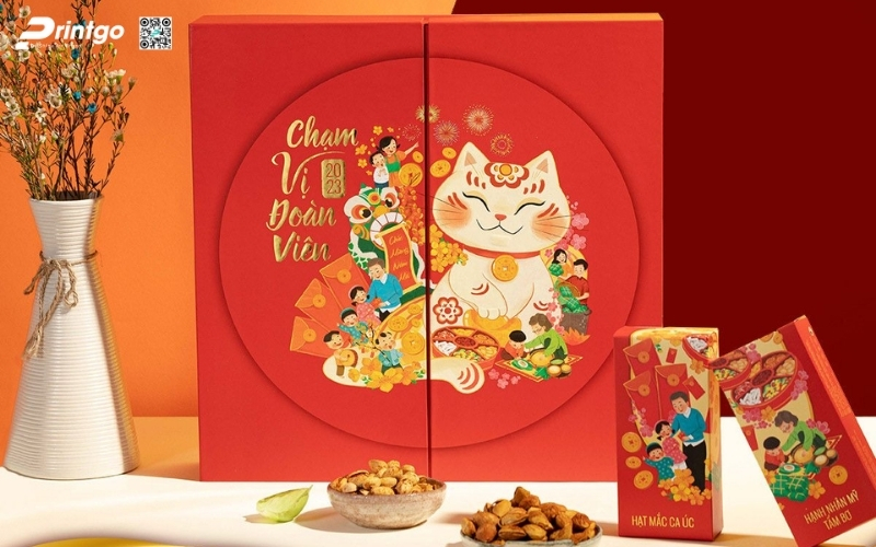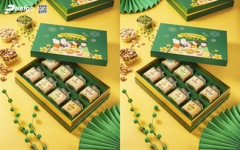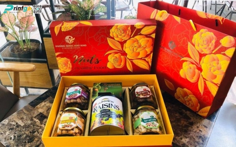 Công nghệ in ảnh hưởng trực tiếp đến thẩm mỹ và độ sang trọng của hộp quà Tết. Một thiết kế đẹp, kết hợp với công nghệ in hiện đại, sẽ giúp tạo ấn tượng mạnh mẽ ngay từ cái nhìn đầu tiên và nâng cao giá trị món quà trong mắt người nhận. Các công nghệ in phổ biến và hiệu quả cho hộp quà Tết hạt dinh dưỡng: