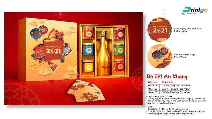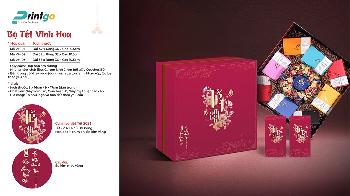 Thấu hiểu nhu cầu của khách hàng, Printgo cung cấp dịch vụ thiết kế và in hộp quà Tết cao cấp với nhiều ưu đãi hấp dẫn. Chúng tôi đem đến những trải nghiệm thiết kế và in hộp quà Tết với rất nhiều ưu điểm như: