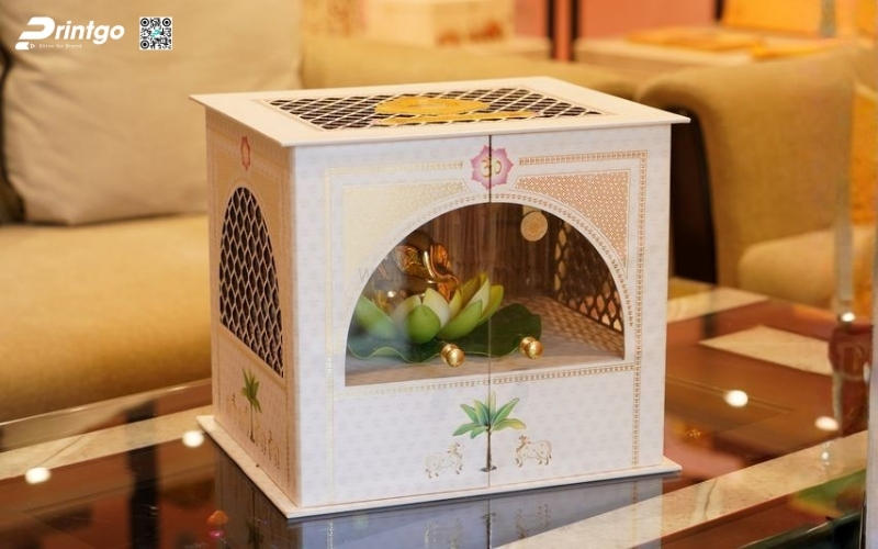 Chất lượng đảm bảo từ từng bộ phận: Hộp quà Tết gắn nhạc tại Printgo sử dụng giấy carton cao cấp, giấy mỹ thuật, module nhạc bền, pin an toàn, kết hợp gia công tinh xảo (ép kim, phủ UV, cán màng nhung…), đảm bảo hộp đẹp mắt, âm thanh rõ ràng và bền lâu.