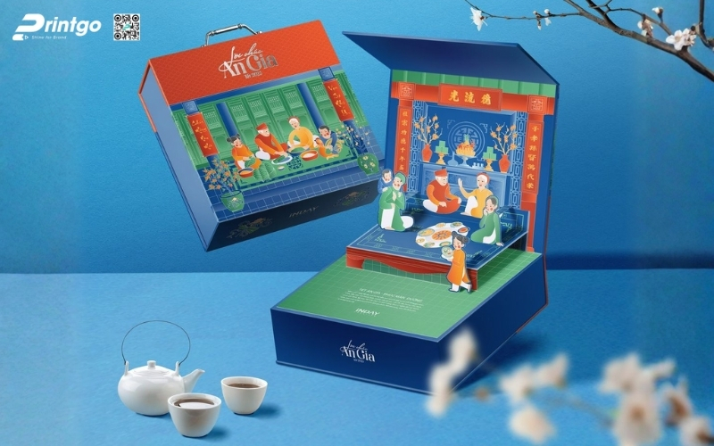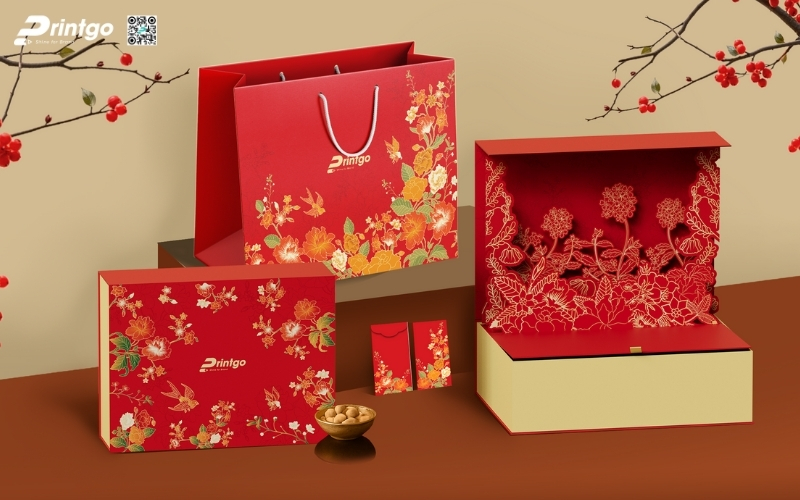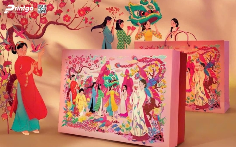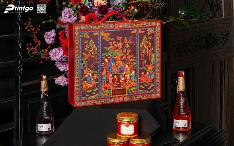 Trang trí và in ấn: Có thể in logo, thông điệp, hình ảnh thương hiệu hoặc họa tiết Tết để cá nhân hóa và nâng giá trị món quà.