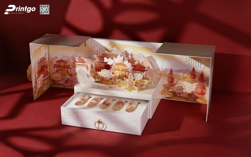 Chất liệu và hoàn thiện hộp: Chọn hộp làm từ giấy carton cao cấp, giấy mỹ thuật, có cán màng nhung, ép kim hoặc phủ UV tùy theo đẳng cấp và thông điệp doanh nghiệp muốn gửi gắm.