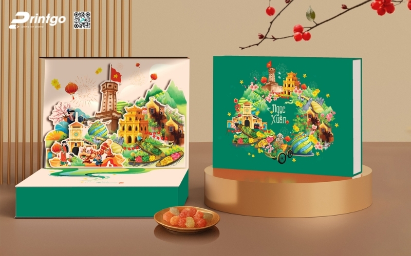 - Hộp pop-up 3D: Khi mở hộp, các chi tiết tạo hình nổi bật lên, giúp tăng giá trị cảm xúc và yếu tố bất ngờ cho món quà Tết.