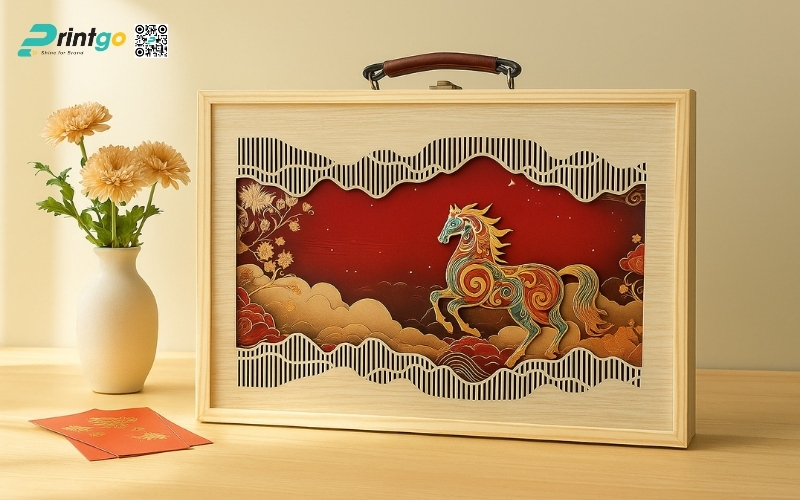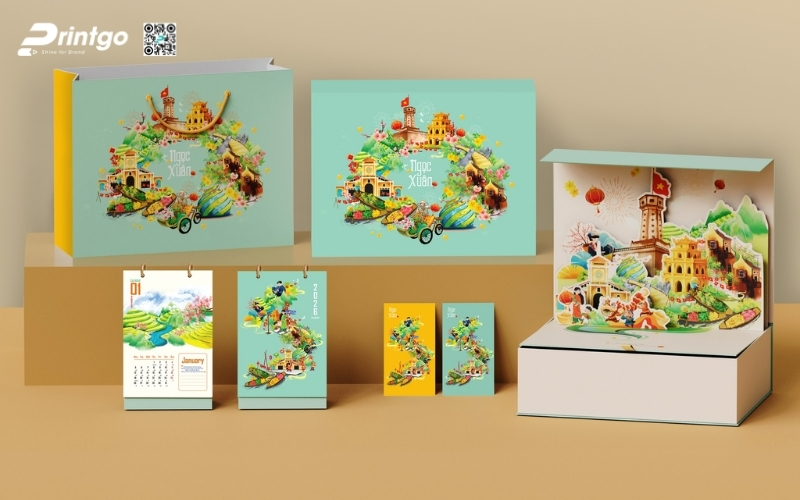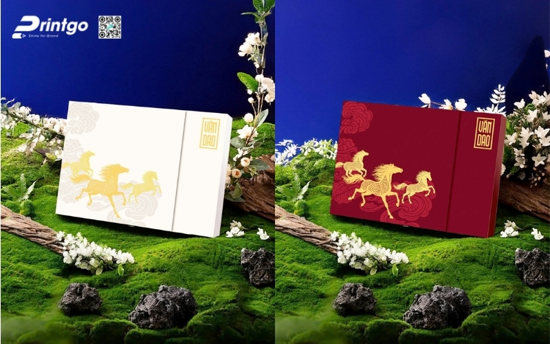 - Đa dạng mẫu mã độc quyền: Printgo sở hữu kho mẫu hộp quà Tết luxury phong phú, được phát triển theo từng mùa Tết và xu hướng thị trường, giúp doanh nghiệp tránh tình trạng trùng lặp, đại trà.