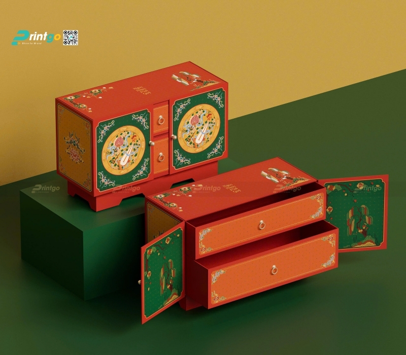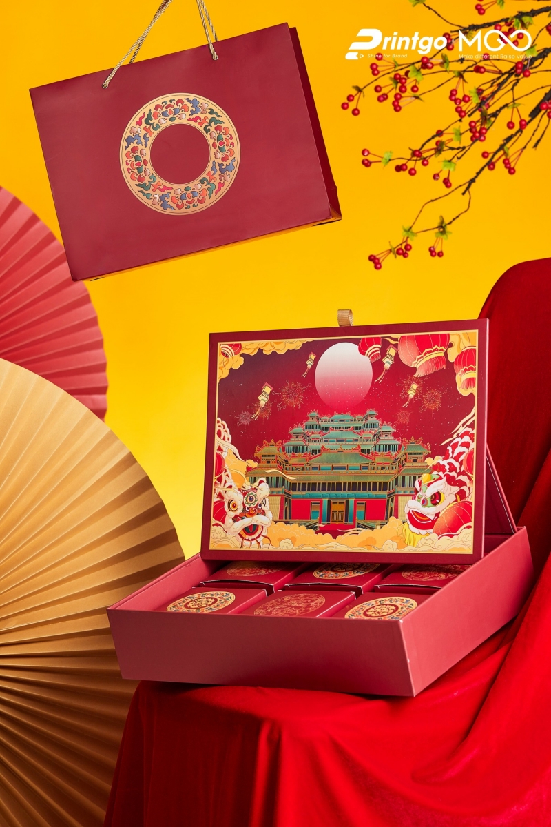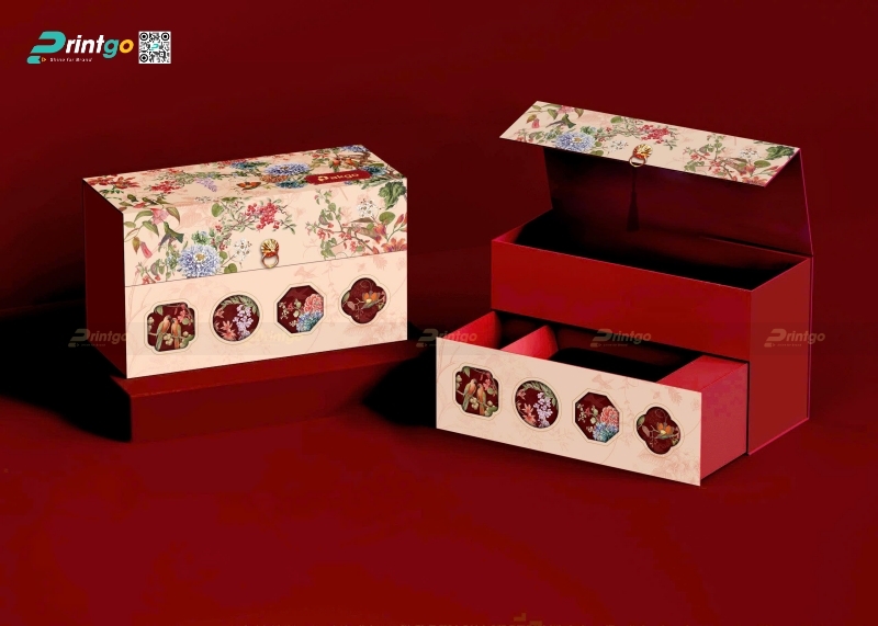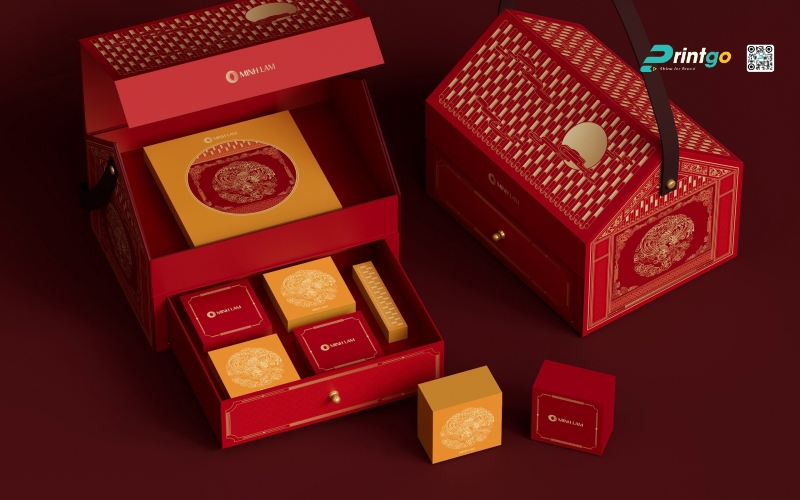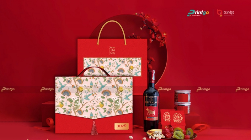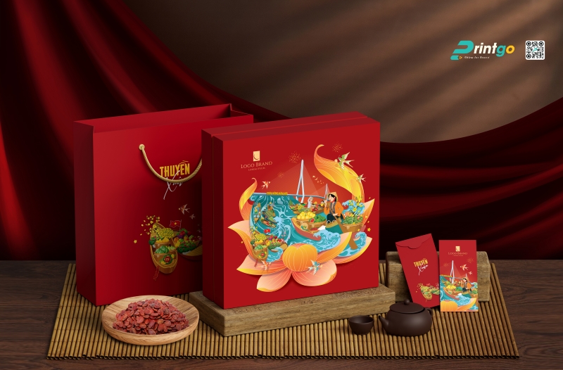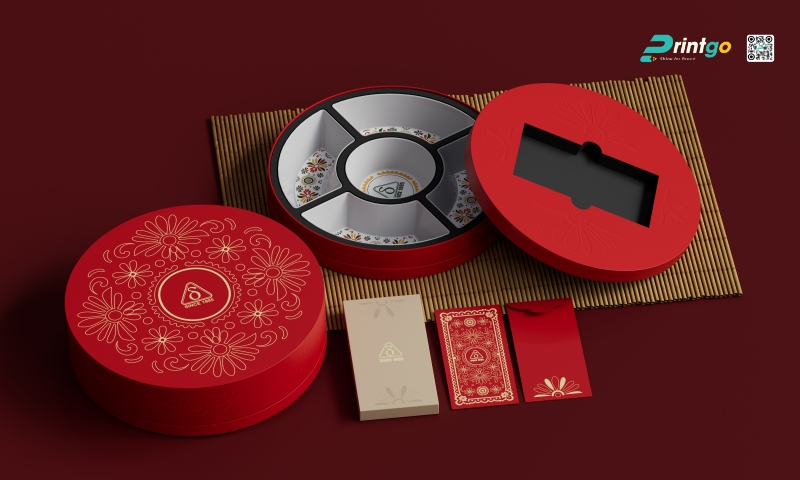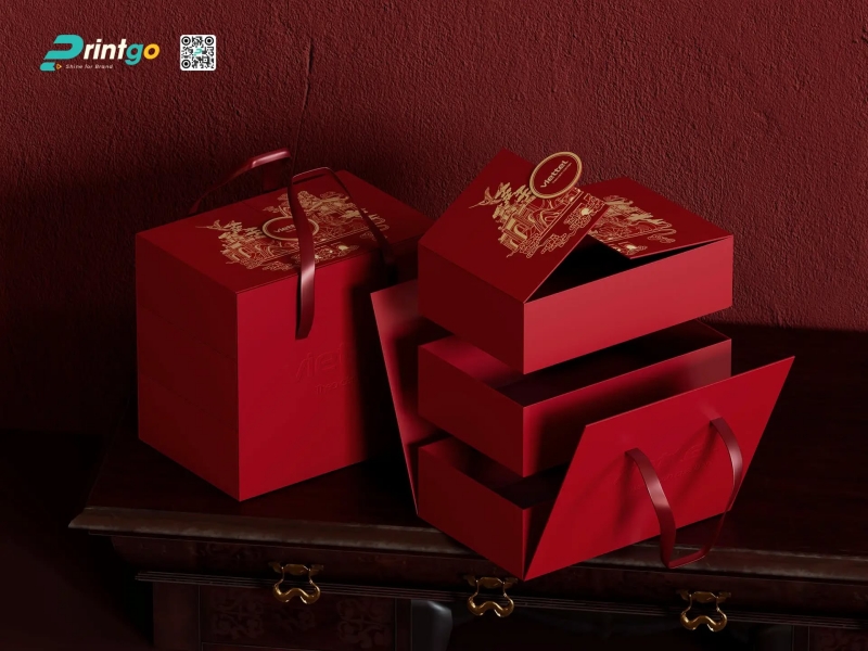 Vị thế "bất khả chiến bại" của hộp quà tết màu đỏ trong văn hóa Tết cổ truyền của người Việt Nam từ bao đời nay là không thể phủ nhận. Màu đỏ luôn là biểu tượng của Hỏa khí, của sự may mắn, xua đuổi tà ma và kích cầu tài lộc, là gam màu không thể thiếu trong các ấn phẩm bao bì phục vụ cho thị trường đại chúng. Tại Printgo, các thiết kế hộp quà tết màu đỏ năm 2026 đã được "làm mới" với các tông màu hiện đại hơn như đỏ đô, đỏ rượu vang (Bordeaux) hay đỏ cam, kết hợp với các họa tiết truyền thống được cách điệu tối giản để phù hợp với gu thẩm mỹ đương đại.