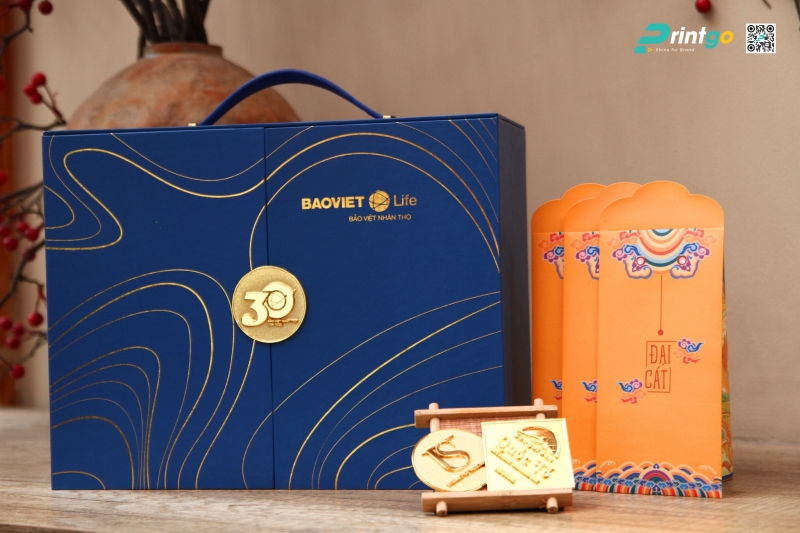 Đối với các khối ngành yêu cầu tính chuyên nghiệp và uy tín cao như Ngân hàng, Tài chính, Bảo hiểm, Logistics hay Công nghệ, việc lựa chọn hộp quà tết xanh dương là một chiến lược xây dựng thương hiệu thông minh. Màu xanh dương khi kết hợp với logo doanh nghiệp in nhũ bạc hoặc trắng sẽ tạo nên độ tương phản mạnh mẽ, giúp nhận diện thương hiệu trở nên nổi bật và dễ ghi nhớ hơn bao giờ hết. Hơn nữa, hộp quà tết màu xanh dương còn gợi lên cảm giác về sự hội nhập quốc tế, về những khát vọng vươn ra biển lớn, rất phù hợp với tinh thần khởi nghiệp và phát triển không ngừng của năm mới 2026.
