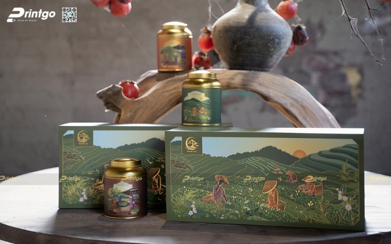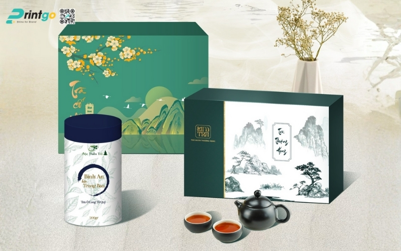 Màu sắc chủ đạo thường là xanh - vàng - đỏ, phù hợp cho các set hộp quà Tết OCOP và các loại trà hữu cơ trong nhóm quà Tết organic. Thiết kế trang nhã, nhẹ nhàng giúp món quà phù hợp nhiều độ tuổi, đặc biệt là quà biếu người lớn tuổi hoặc đối tác.