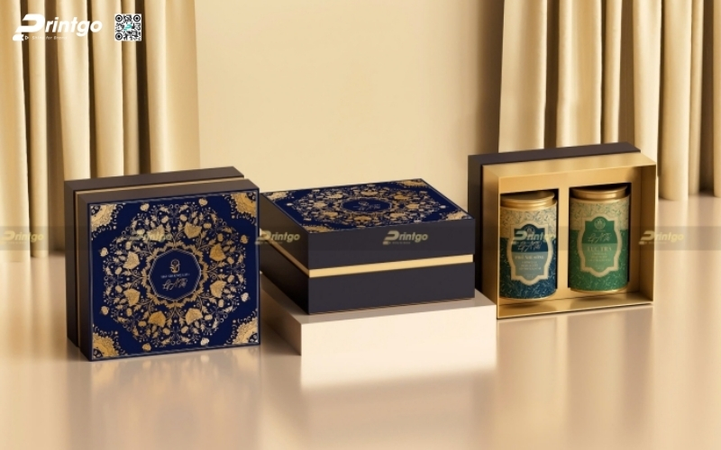 - Màu xanh navy: Hiện đại, tinh tế và bền màu, được nhiều doanh nghiệp lựa chọn khi thiết kế hộp quà Tết nông sản theo phong cách trang nhã, chuyên nghiệp.