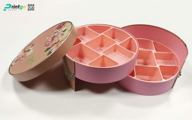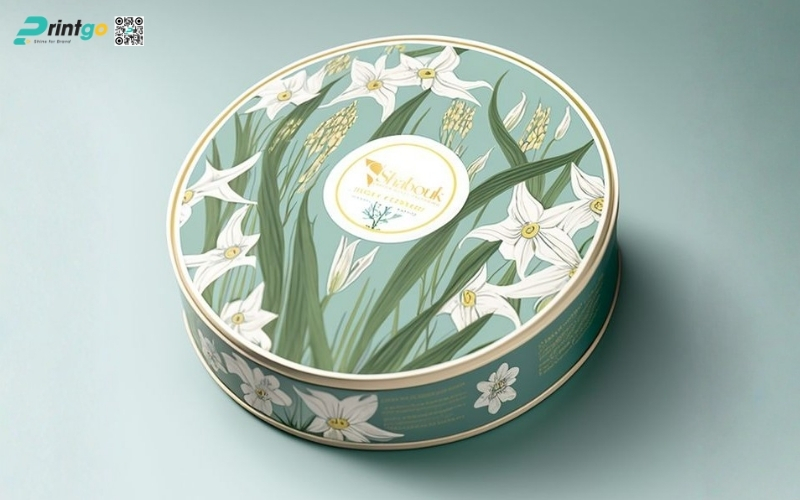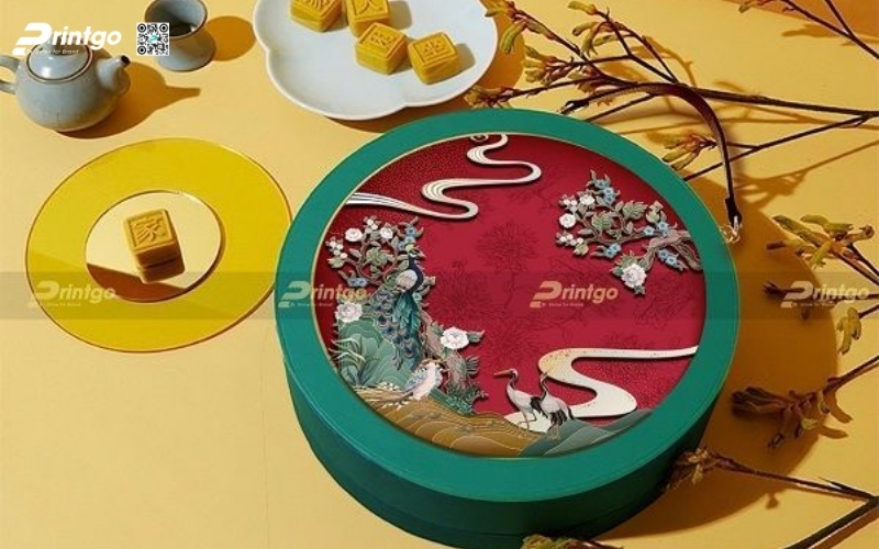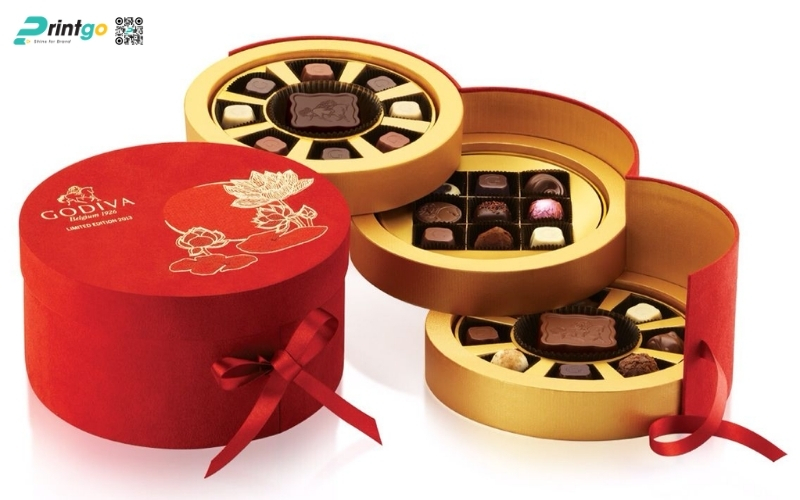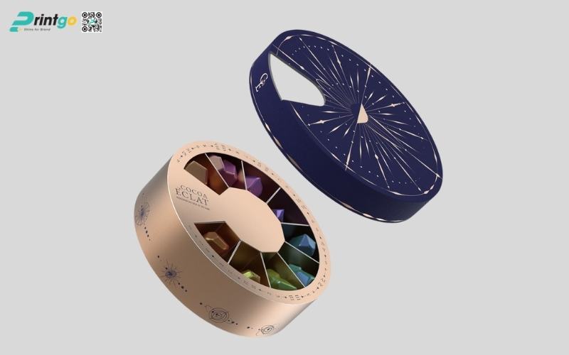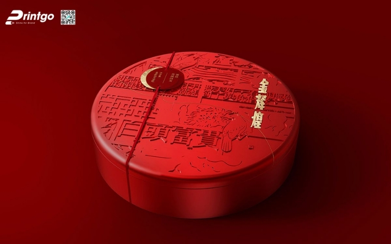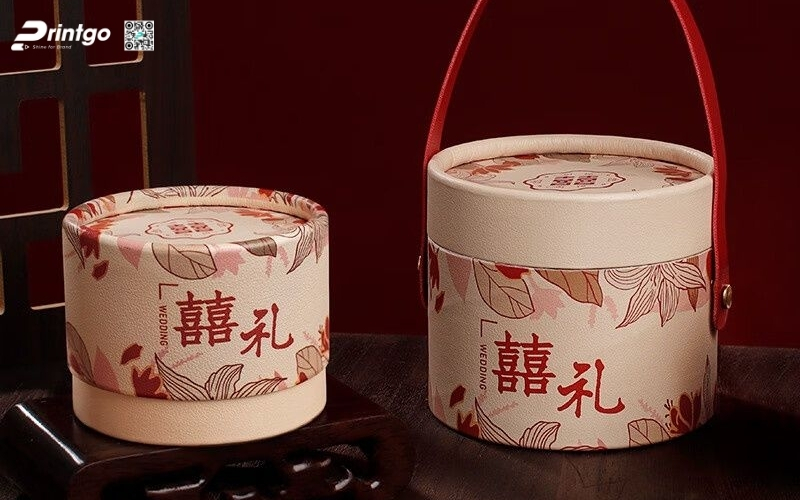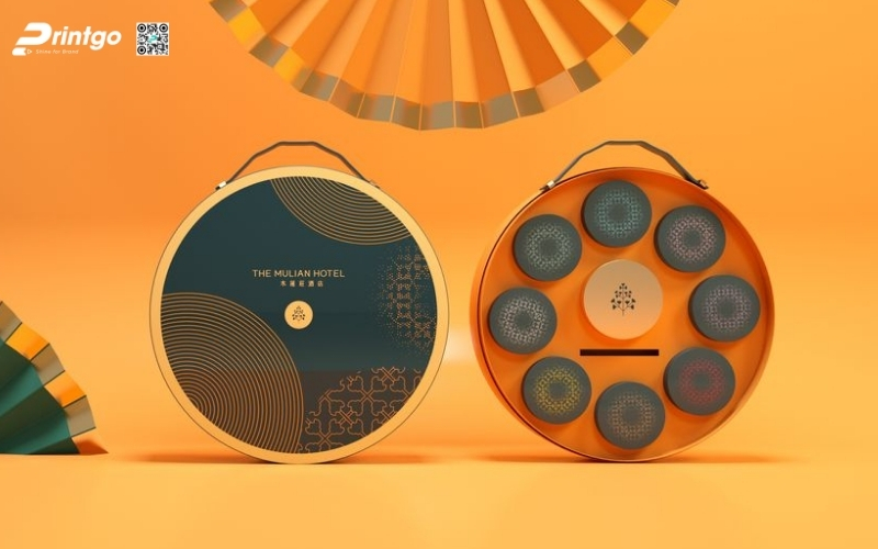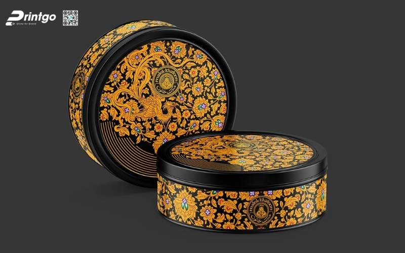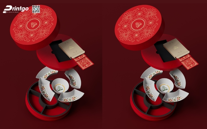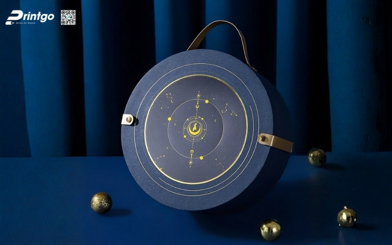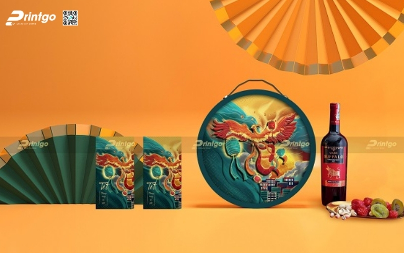 Thiết kế độc quyền, sáng tạo: Printgo cung cấp mẫu hộp Tết tròn thiết kế riêng, sang trọng, phù hợp với thương hiệu doanh nghiệp.