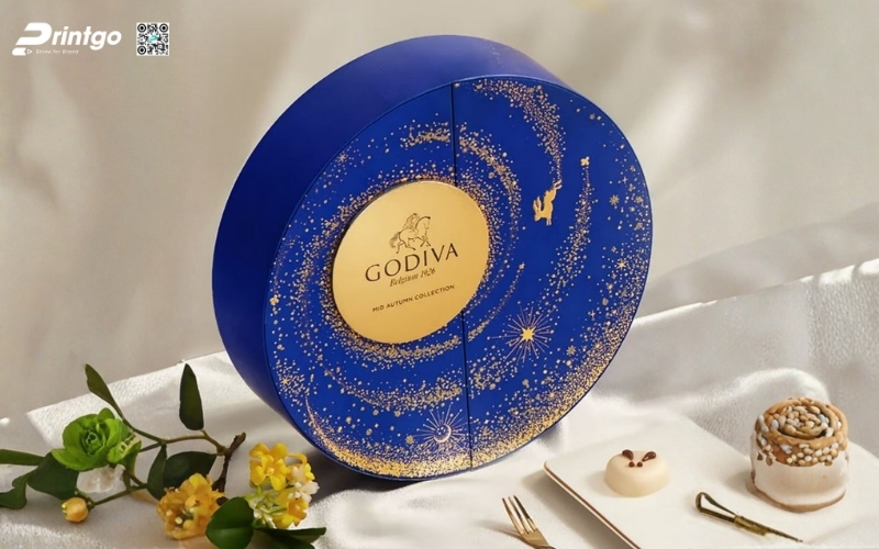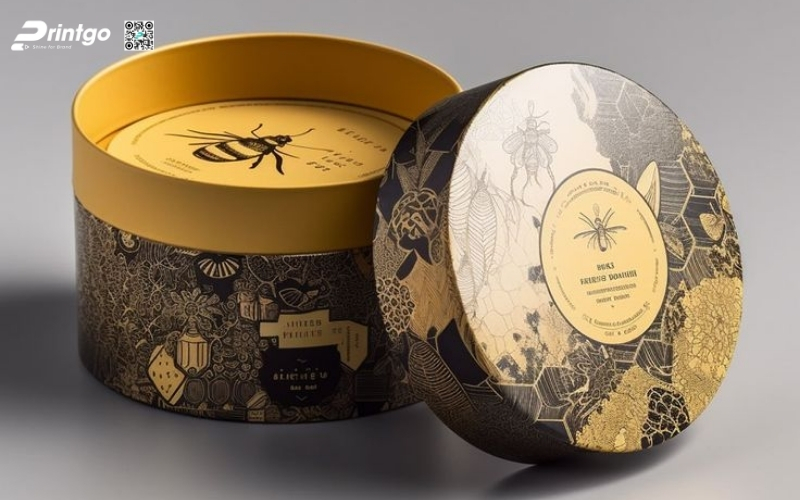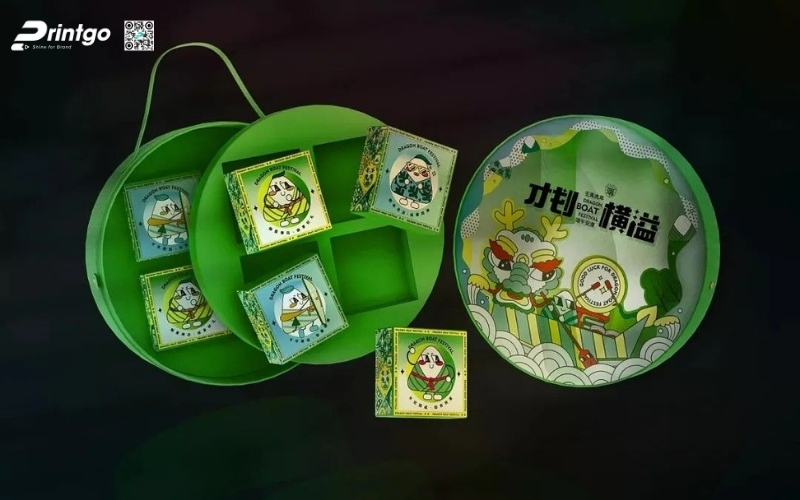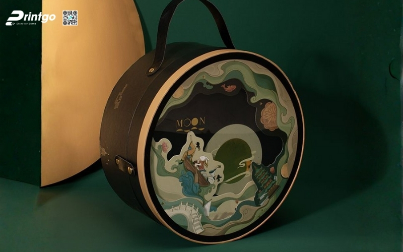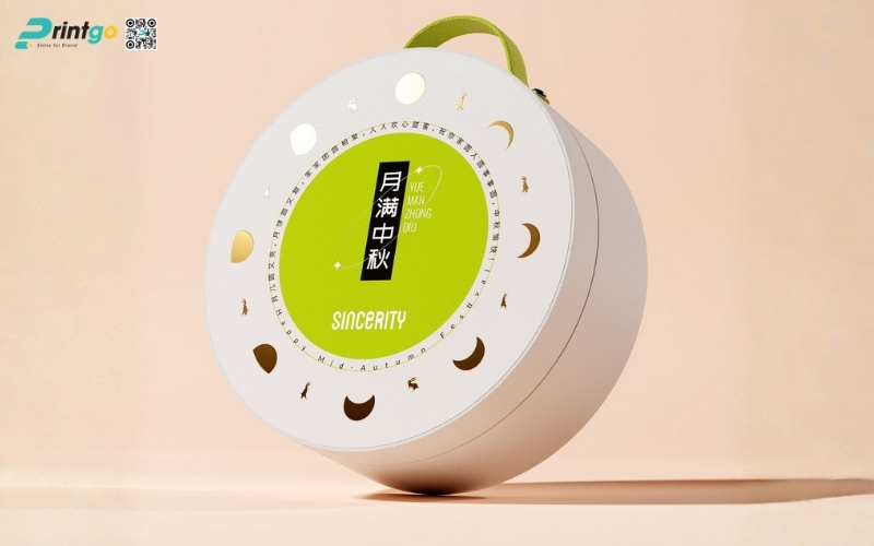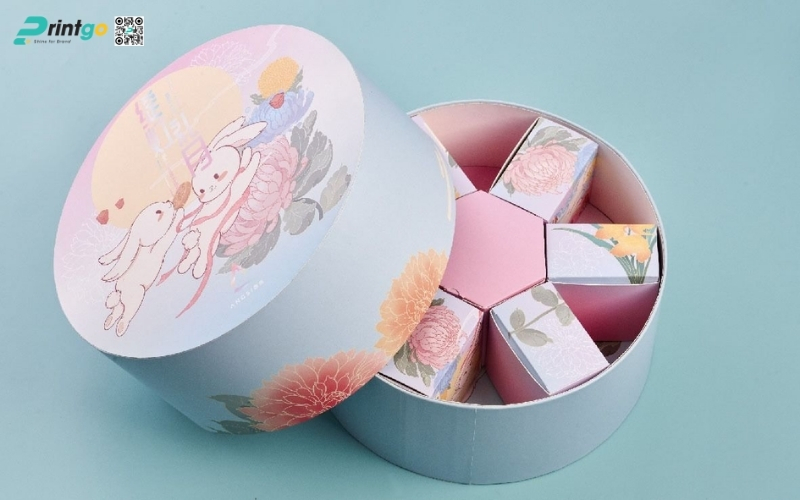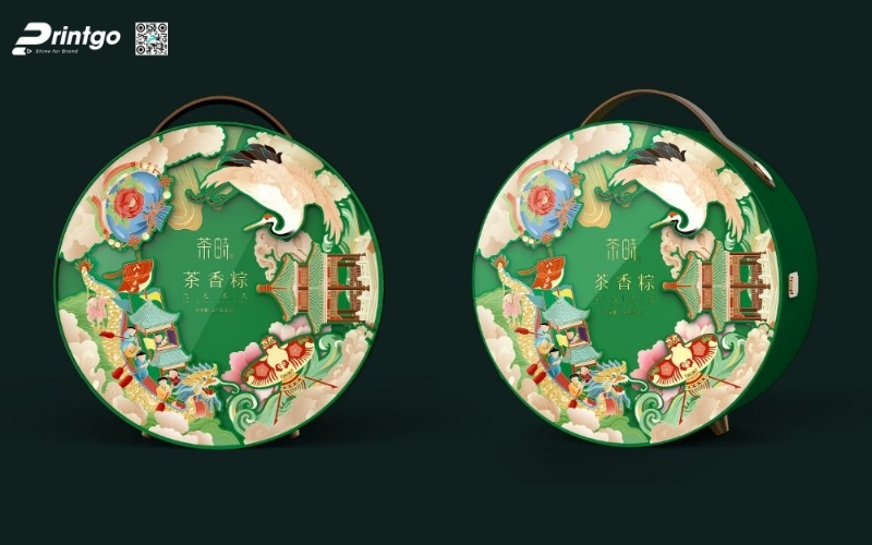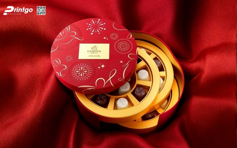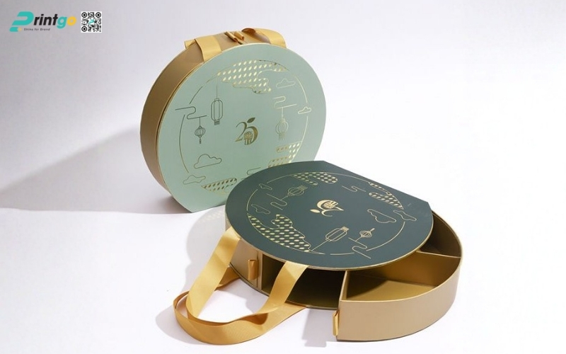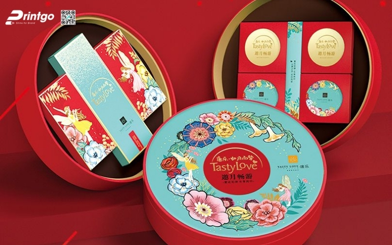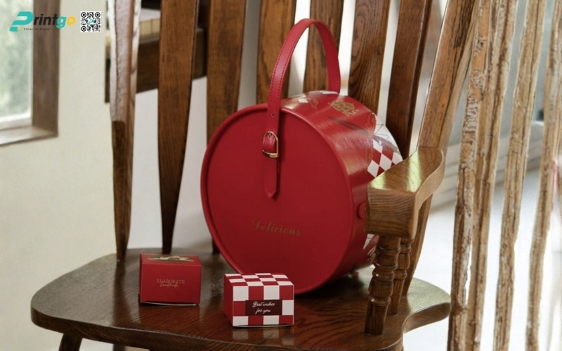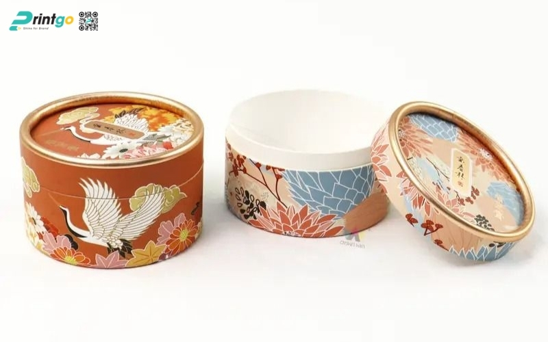 Thiết kế độc quyền, sáng tạo: Printgo cung cấp mẫu hộp Tết tròn thiết kế riêng, sang trọng, phù hợp với thương hiệu doanh nghiệp.