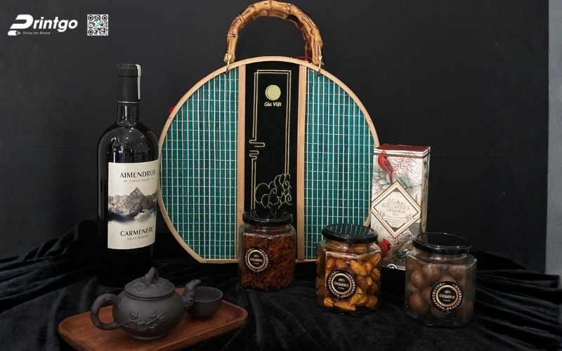 Tùy chỉnh theo thương hiệu: Nếu có thể, hãy đặt in hộp quà Tết tròn độc quyền, in logo, thông điệp, hoặc phối màu theo bộ nhận diện thương hiệu để tăng giá trị quà tặng và ấn tượng lâu dài.