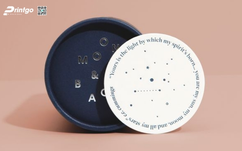 Ép kim - bể nổi: Phủ kim loại bóng hoặc vàng, bạc, làm nổi bật logo hoặc họa tiết trên nắp hộp, tăng giá trị thẩm mỹ.