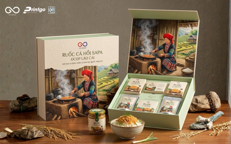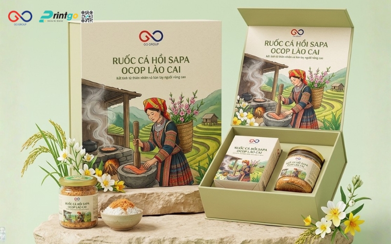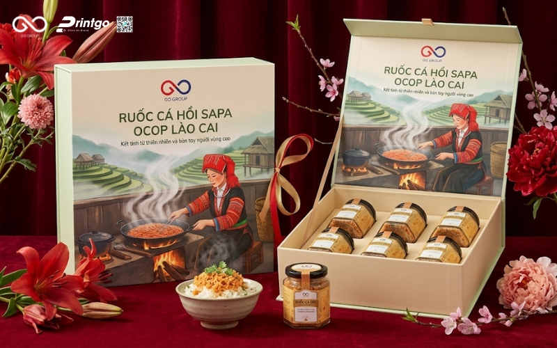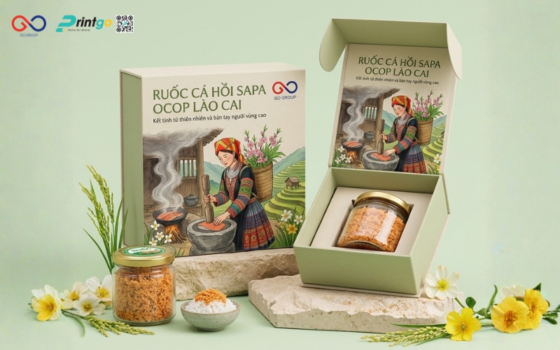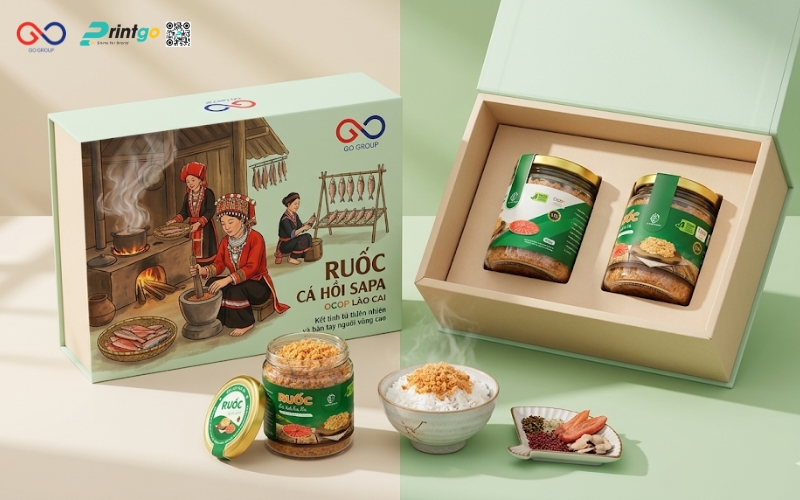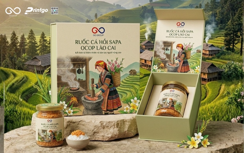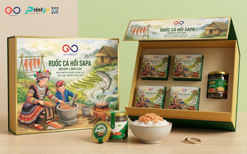 Hộp ruốc cá hồi Sapa là yếu tố quan trọng quyết định cách người tiêu dùng cảm nhận về giá trị của một đặc sản vùng cao. Trong khi ruốc cá hồi Sapa vốn là sản phẩm chất lượng, giàu dinh dưỡng và mang đậm dấu ấn Tây Bắc, thì thực tế cho thấy nhiều sản phẩm vẫn chưa thực sự nổi bật trên thị trường, phần lớn đến từ cách thể hiện bao bì chưa tương xứng. Bài viết này Printgo sẽ cùng bạn nhìn lại thực trạng bao bì ruốc cá hồi Sapa hiện nay dưới góc nhìn của một chuyên gia, từ đó phân tích những điểm còn hạn chế và đề xuất hướng nâng cấp phù hợp.