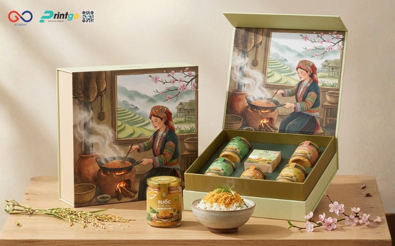 Sau bước đánh giá, Printgo đề xuất giải pháp cụ thể và đồng hành triển khai trọn gói từ thiết kế đến sản xuất. Từng phương án được xây dựng dựa trên mục tiêu sử dụng thực tế như bán lẻ, trưng bày siêu thị hay làm quà tặng. Nhờ kinh nghiệm thực tế trong ngành, Printgo giúp hộp ruốc cá hồi Sapa đạt sự cân bằng giữa thẩm mỹ và công năng, phù hợp với tiêu chuẩn phân phối hiện đại. Mỗi thiết kế đều hướng đến việc nâng cao giá trị cảm nhận và hỗ trợ sản phẩm tiếp cận thị trường rộng hơn.
