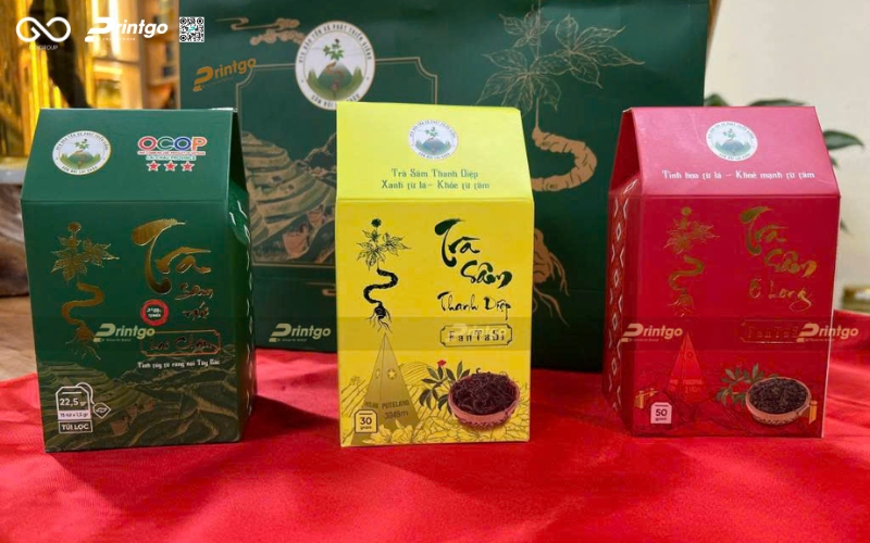 Khi bắt đầu dự án, Printgo không đi ngay vào thiết kế mà dành thời gian phân tích sản phẩm, thị trường và câu chuyện thương hiệu. Từ đó, hướng đi được xác định rõ: đưa giá trị sâm núi quý từ đại ngàn trở thành trung tâm của bao bì. Thiết kế mới tập trung vào yếu tố bản sắc vùng cao, kết hợp màu sắc, họa tiết và cấu trúc hộp để tạo cảm giác cao cấp hơn. Bao bì không còn chỉ để chứa sản phẩm, mà trở thành người kể chuyện, giúp khách hàng hiểu ngay giá trị ngay từ ánh nhìn đầu tiên.